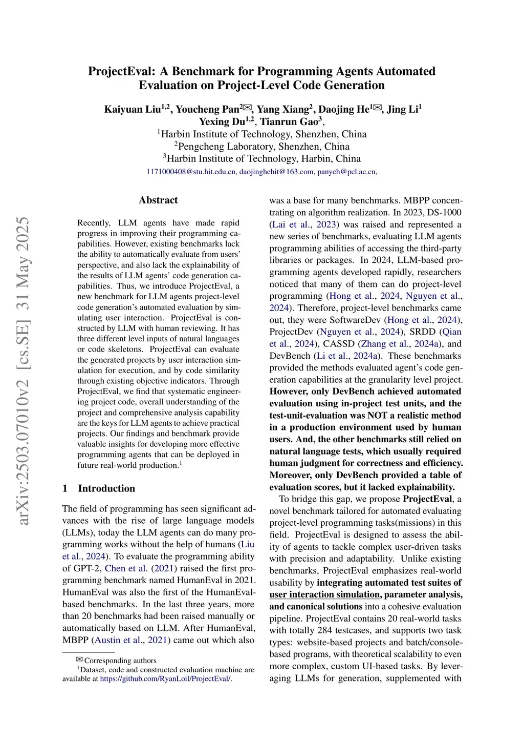 ProjectEval: A Benchmark for Programming Agents Automated Evaluation on Project-Level Code Generation