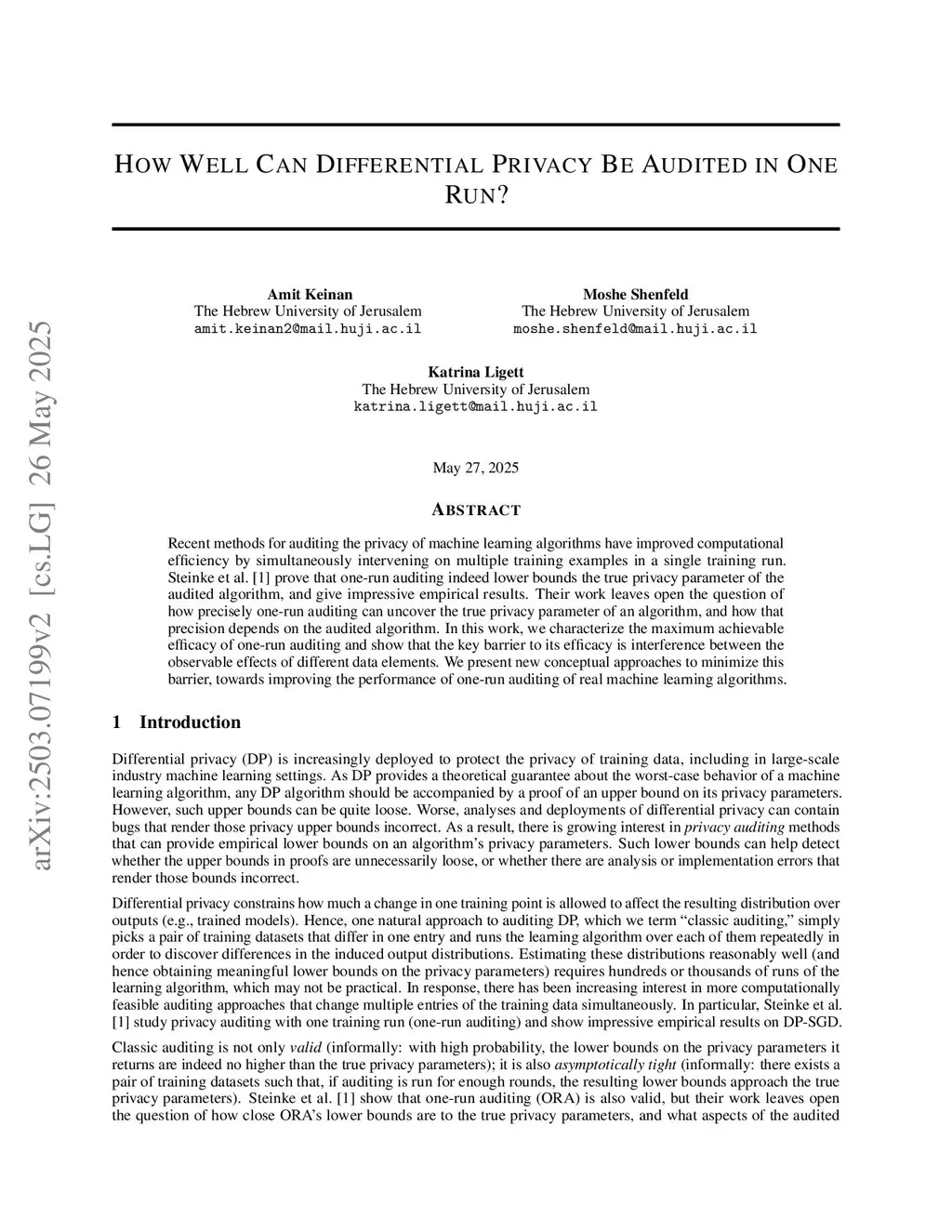 Recent methods for auditing the privacy of machine learning algorithms have improved computational efficiency by simultaneously intervening on multiple training examples in a single training run. Steinke et al. (2024) prove that one-run auditing indeed lower bounds the true privacy parameter of the audited algorithm, and give impressive empirical results. Their work leaves open the question of how precisely one-run auditing can uncover the true privacy parameter of an algorithm, and how that precision depends on the audited algorithm. In this work, we characterize the maximum achievable efficacy of one-run auditing and show that the key barrier to its efficacy is interference between the observable effects of different data elements. We present new conceptual approaches to minimize this barrier, towards improving the performance of one-run auditing of real machine learning algorithms.