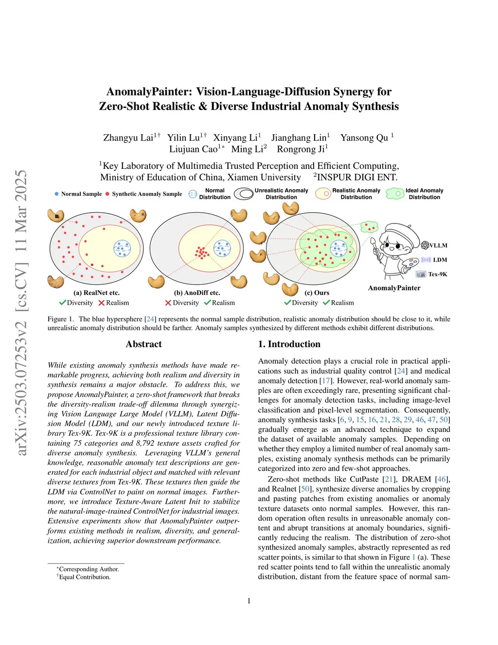 While existing anomaly synthesis methods have made remarkable progress, achieving both realism and diversity in synthesis remains a major obstacle. To address this, we propose AnomalyPainter, a zero-shot framework that breaks the diversity-realism trade-off dilemma through synergizing Vision Language Large Model (VLLM), Latent Diffusion Model (LDM), and our newly introduced texture library Tex-9K. Tex-9K is a professional texture library containing 75 categories and 8,792 texture assets crafted for diverse anomaly synthesis. Leveraging VLLM's general knowledge, reasonable anomaly text descriptions are generated for each industrial object and matched with relevant diverse textures from Tex-9K. These textures then guide the LDM via ControlNet to paint on normal images. Furthermore, we introduce Texture-Aware Latent Init to stabilize the natural-image-trained ControlNet for industrial images. Extensive experiments show that AnomalyPainter outperforms existing methods in realism, diversity, and generalization, achieving superior downstream performance.