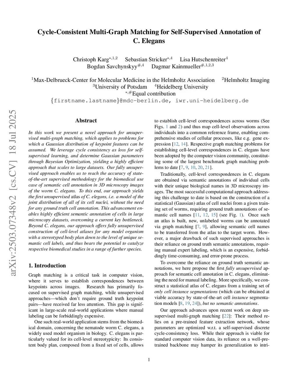 Cycle-Consistent Multi-Graph Matching for Self-Supervised Annotation of C.Elegans