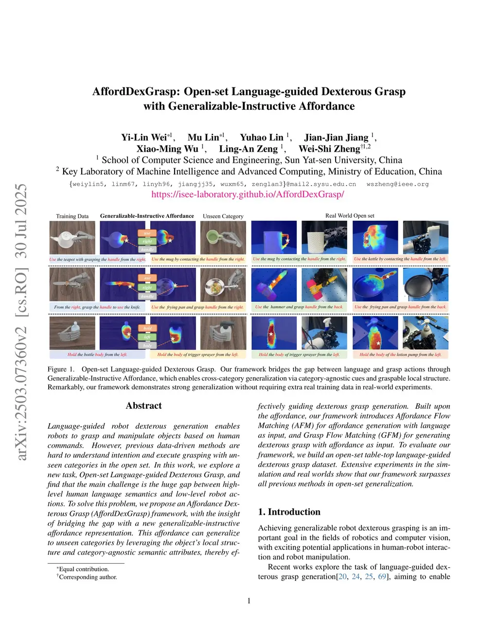 AffordDexGrasp: Open-set Language-guided Dexterous Grasp with Generalizable-Instructive Affordance