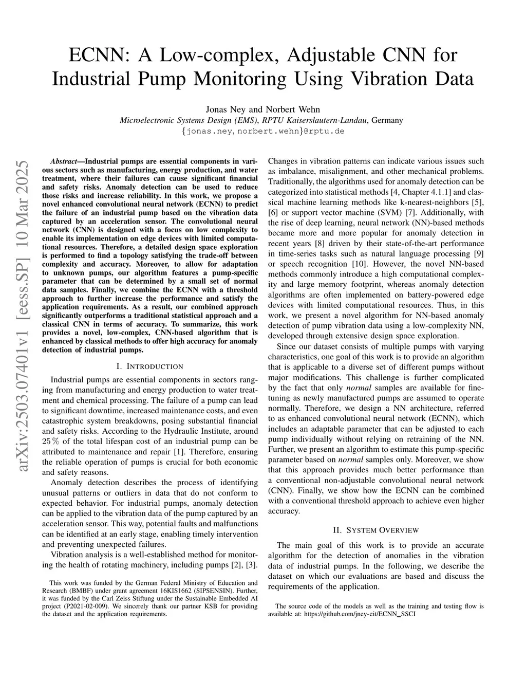 ECNN: A Low-complex, Adjustable CNN for Industrial Pump Monitoring Using Vibration Data