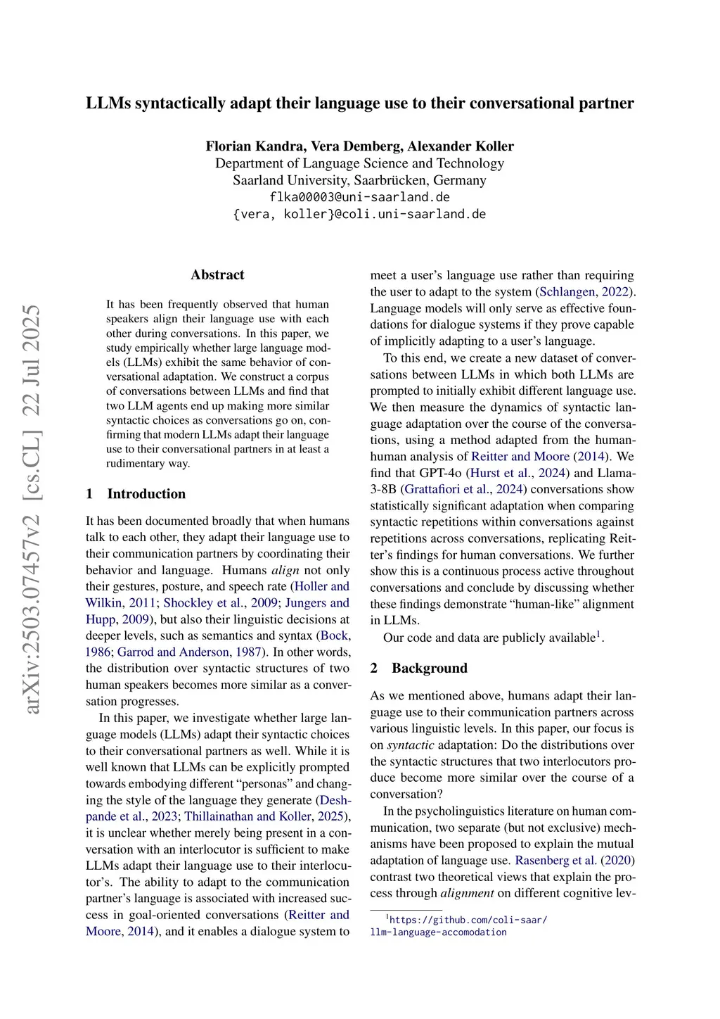 LLMs syntactically adapt their language use to their conversational partner