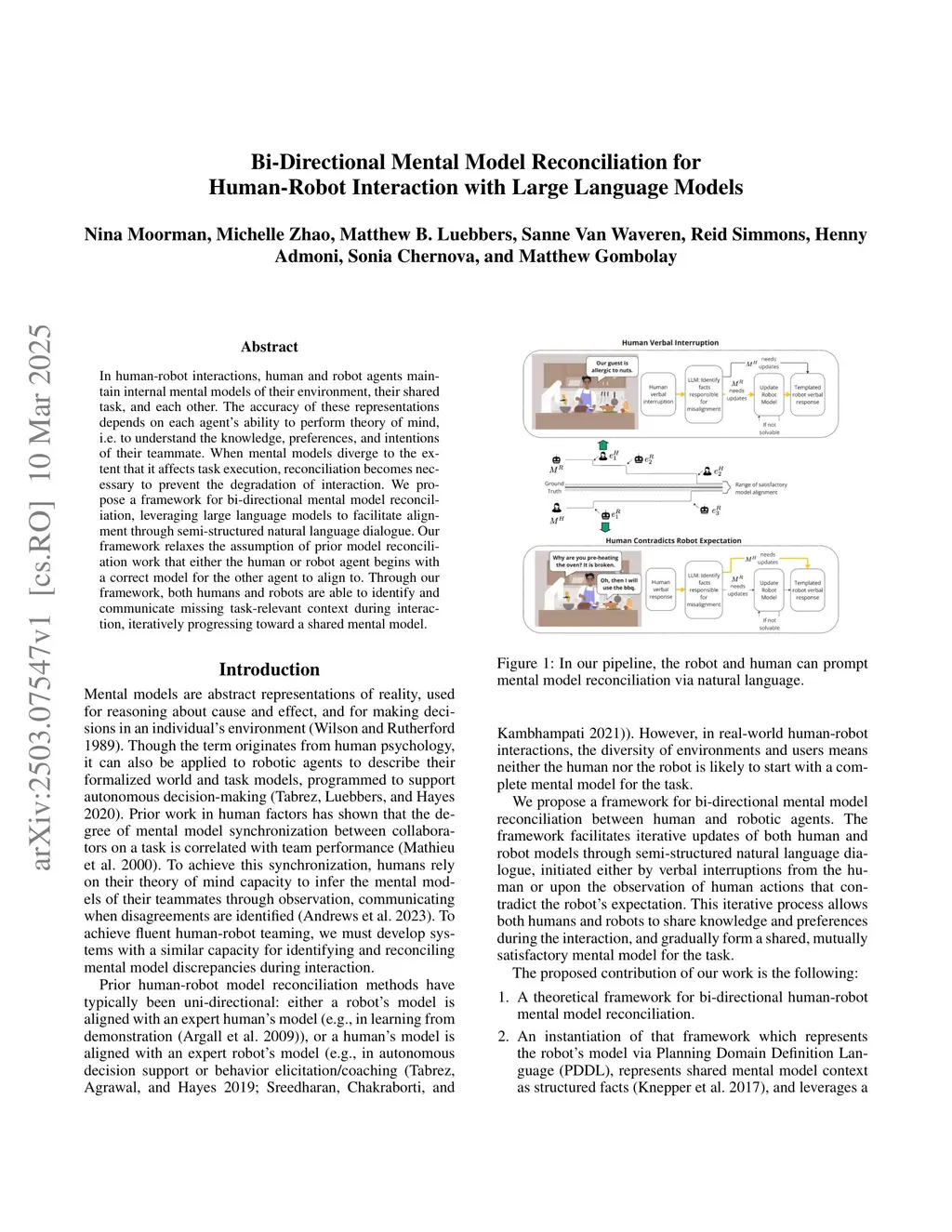 Bi-Directional Mental Model Reconciliation for Human-Robot Interaction with Large Language Models