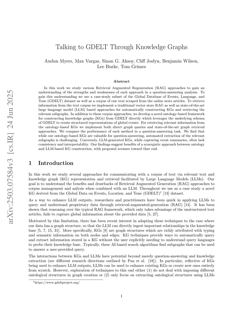 Talking to GDELT Through Knowledge Graphs