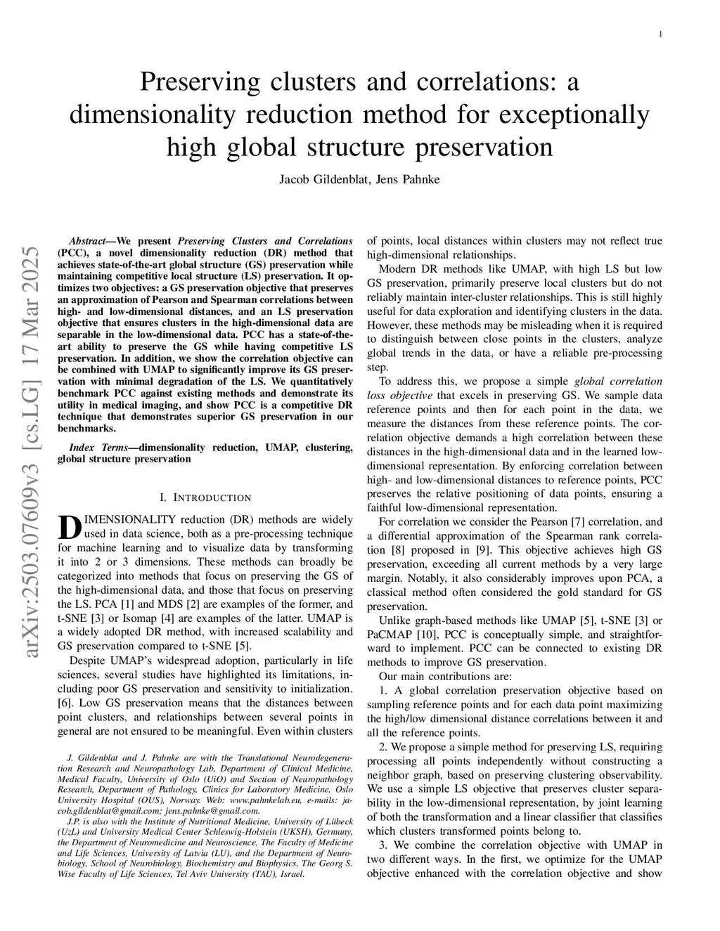 Preserving clusters and correlations: a dimensionality reduction method for exceptionally high global structure preservation