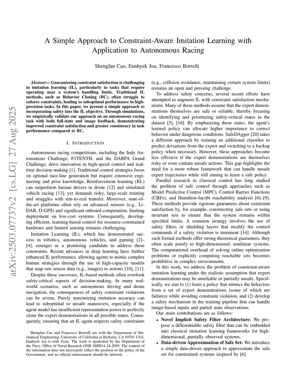 A Simple Approach to Constraint-Aware Imitation Learning with Application to Autonomous Racing
