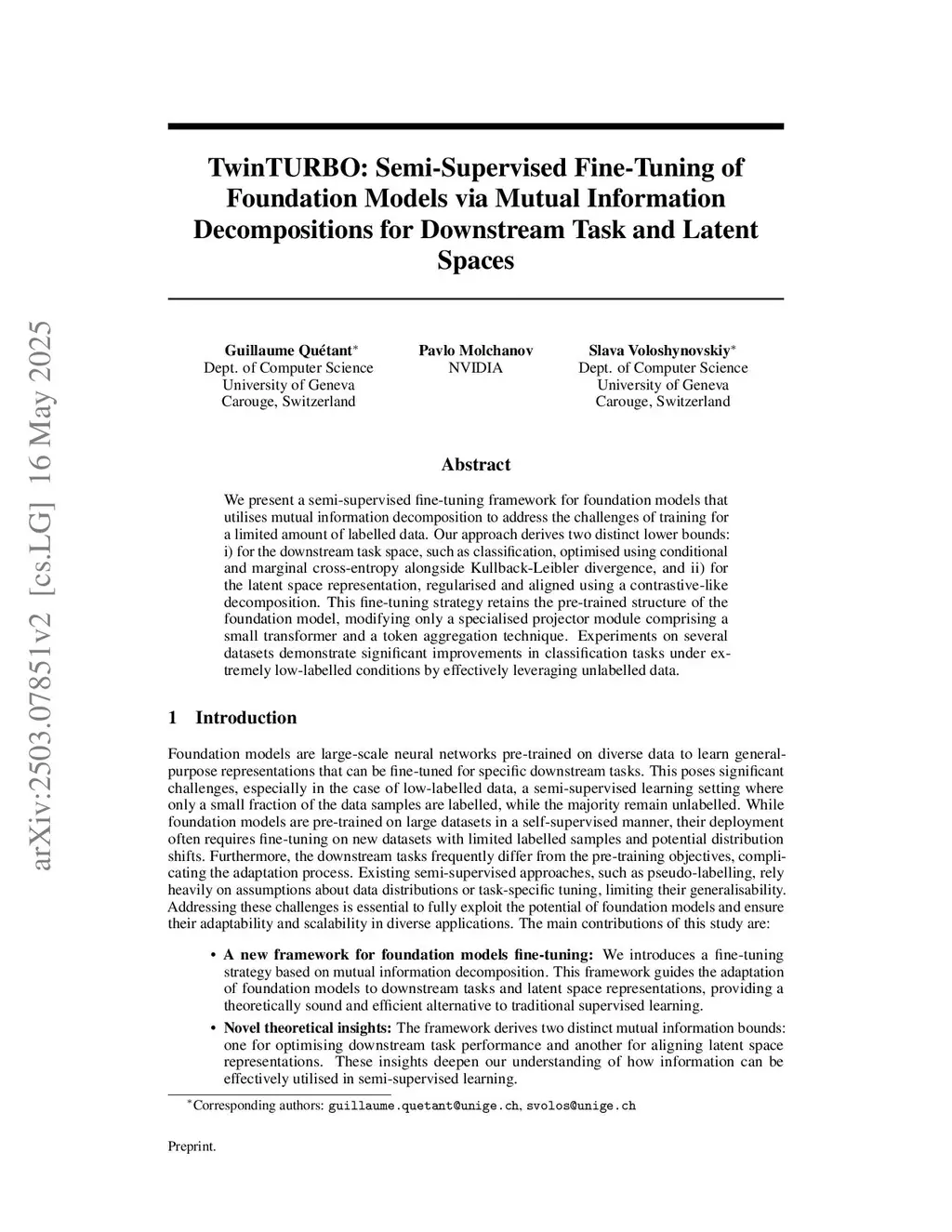 TwinTURBO: Semi-Supervised Fine-Tuning of Foundation Models via Mutual Information Decompositions for Downstream Task and Latent Spaces