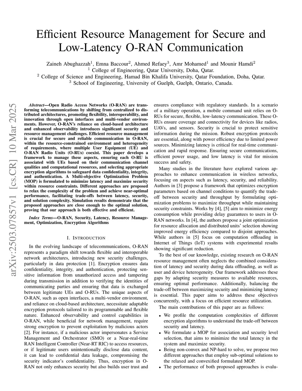 Efficient Resource Management for Secure and Low-Latency O-RAN Communication