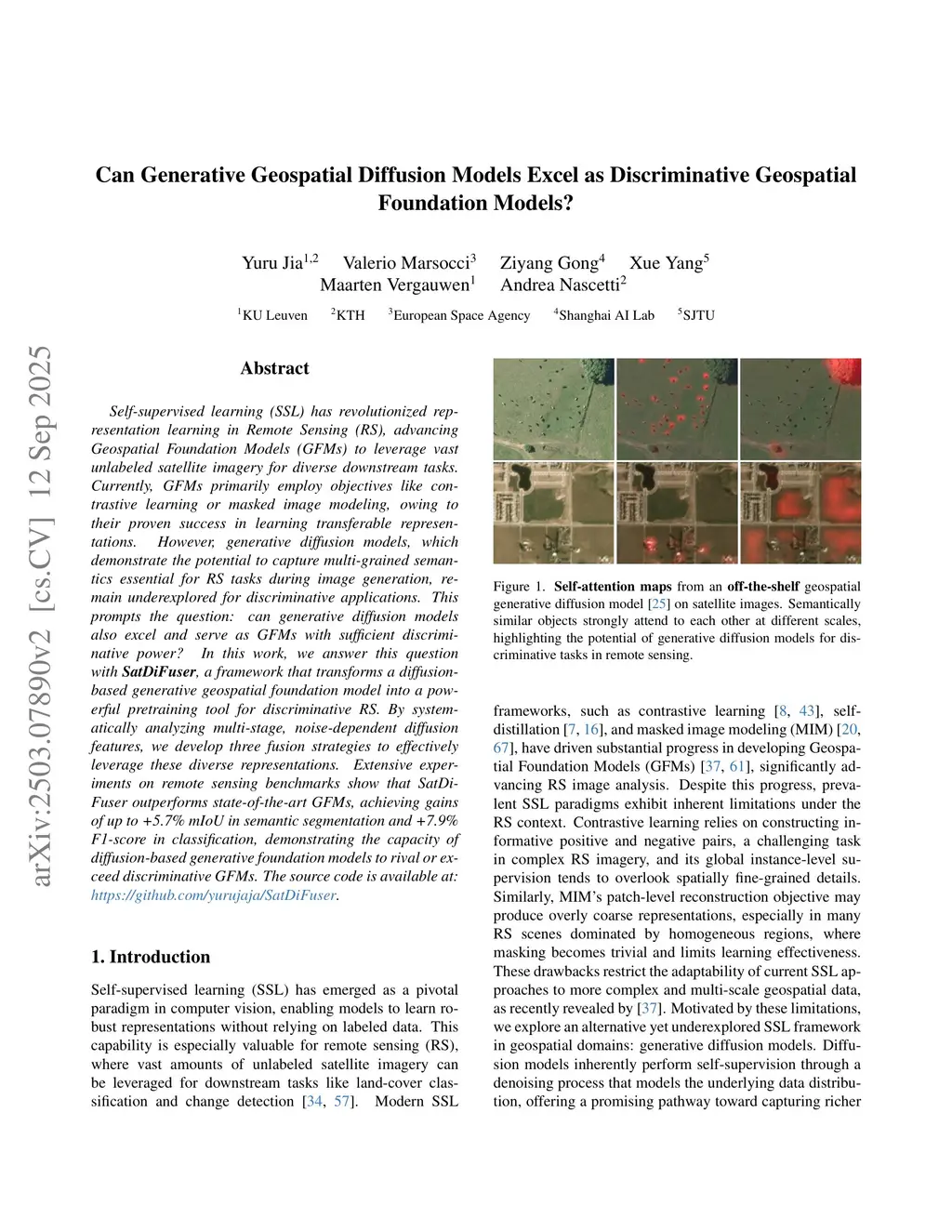 Self-supervised learning (SSL) has revolutionized representation learning in Remote Sensing (RS), advancing Geospatial Foundation Models (GFMs) to leverage vast unlabeled satellite imagery for diverse downstream tasks. Currently, GFMs primarily employ objectives like contrastive learning or masked image modeling, owing to their proven success in learning transferable representations. However, generative diffusion models, which demonstrate the potential to capture multi-grained semantics essential for RS tasks during image generation, remain underexplored for discriminative applications. This prompts the question: can generative diffusion models also excel and serve as GFMs with sufficient discriminative power? In this work, we answer this question with SatDiFuser, a framework that transforms a diffusion-based generative geospatial foundation model into a powerful pretraining tool for discriminative RS. By systematically analyzing multi-stage, noise-dependent diffusion features, we develop three fusion strategies to effectively leverage these diverse representations. Extensive experiments on remote sensing benchmarks show that SatDiFuser outperforms state-of-the-art GFMs, achieving gains of up to +5.7% mIoU in semantic segmentation and +7.9% F1-score in classification, demonstrating the capacity of diffusion-based generative foundation models to rival or exceed discriminative GFMs. The source code is available at:this https URL.