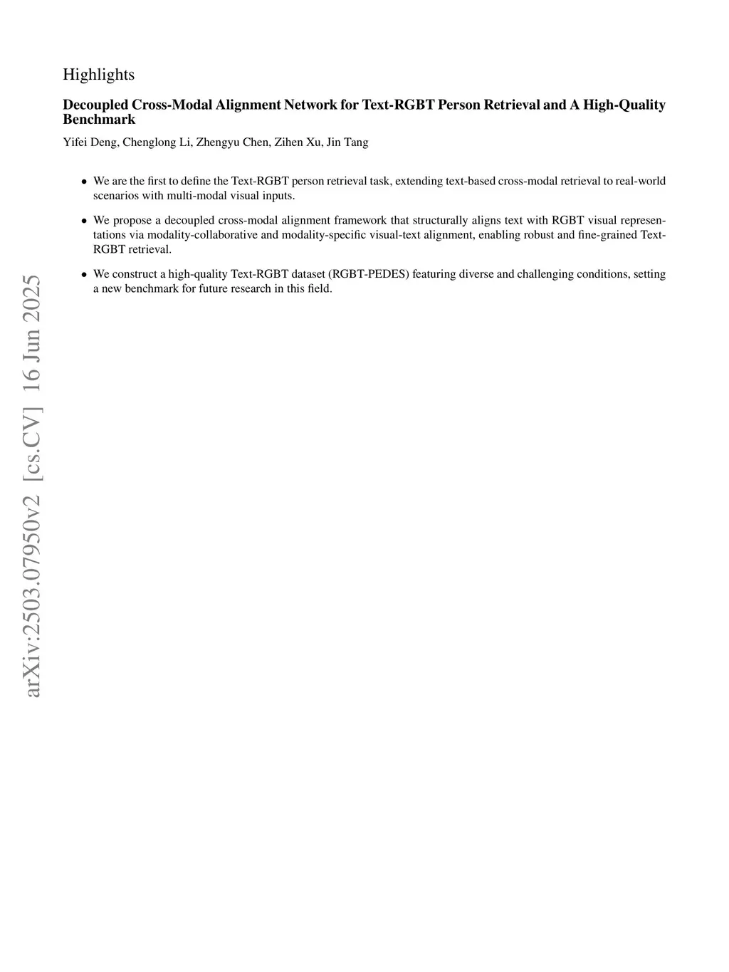 Decoupled Cross-Modal Alignment Network for Text-RGBT Person Retrieval and A High-Quality Benchmark