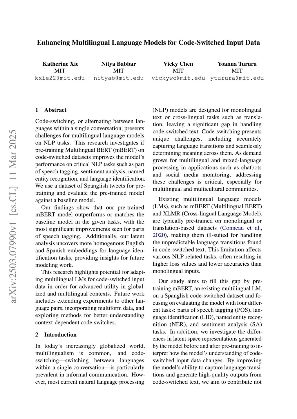Enhancing Multilingual Language Models for Code-Switched Input Data