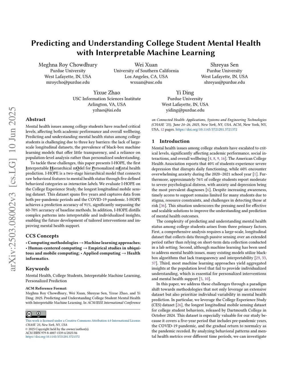 Mental health issues among college students have reached critical levels, significantly impacting academic performance and overall wellbeing. Predicting and understanding mental health status among college students is challenging due to three main factors: the necessity for large-scale longitudinal datasets, the prevalence of black-box machine learning models lacking transparency, and the tendency of existing approaches to provide aggregated insights at the population level rather than individualized understanding.To tackle these challenges, this paper presents I-HOPE, the first Interpretable Hierarchical mOdel for Personalized mEntal health prediction. I-HOPE is a two-stage hierarchical model that connects raw behavioral features to mental health status through five defined behavioral categories as interaction labels. We evaluate I-HOPE on the College Experience Study, the longest longitudinal mobile sensing dataset. This dataset spans five years and captures data from both pre-pandemic periods and the COVID-19 pandemic. I-HOPE achieves a prediction accuracy of 91%, significantly surpassing the 60-70% accuracy of baseline methods. In addition, I-HOPE distills complex patterns into interpretable and individualized insights, enabling the future development of tailored interventions and improving mental health support. The code is available atthis https URL.