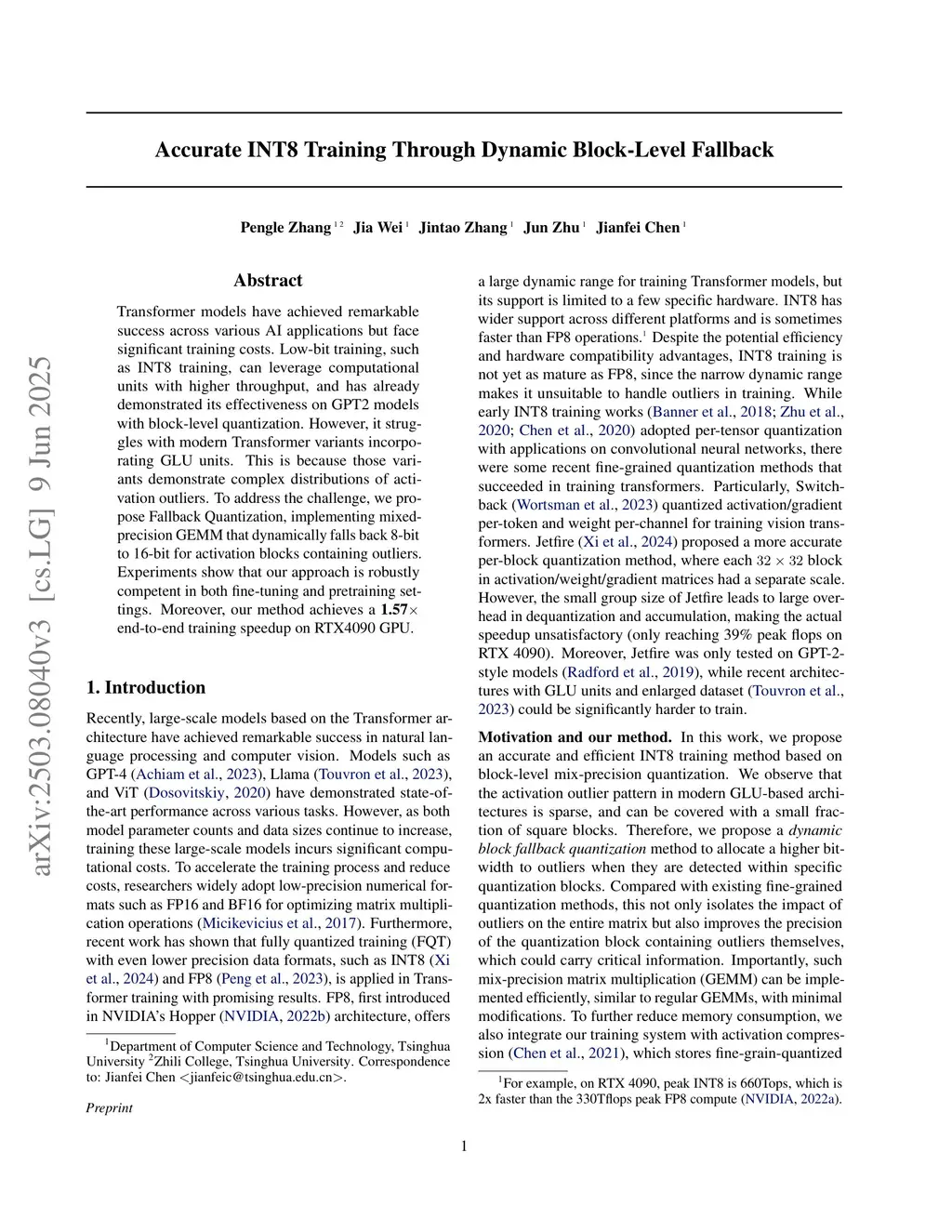Accurate INT8 Training Through Dynamic Block-Level Fallback