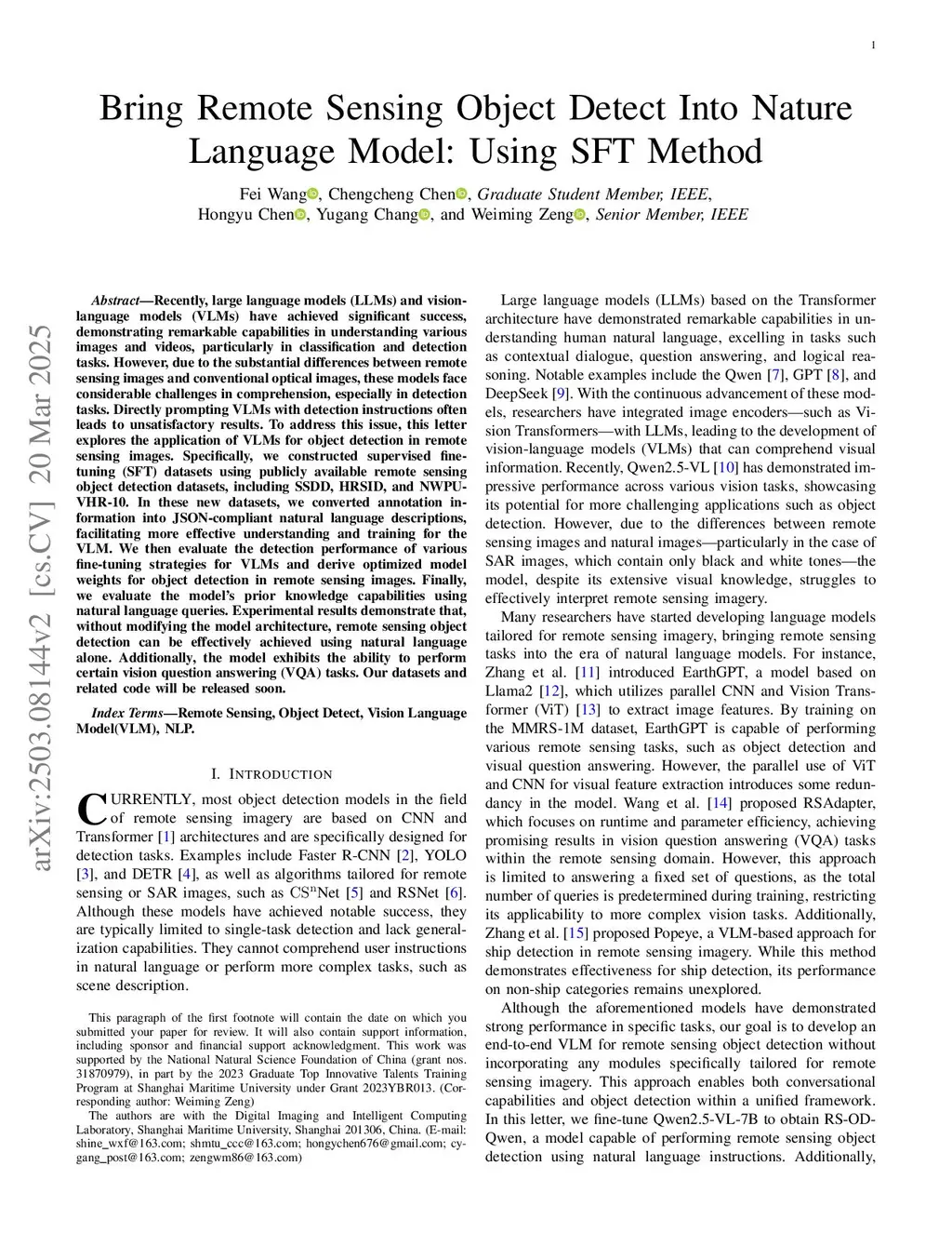 Bring Remote Sensing Object Detect Into Nature Language Model: Using SFT Method