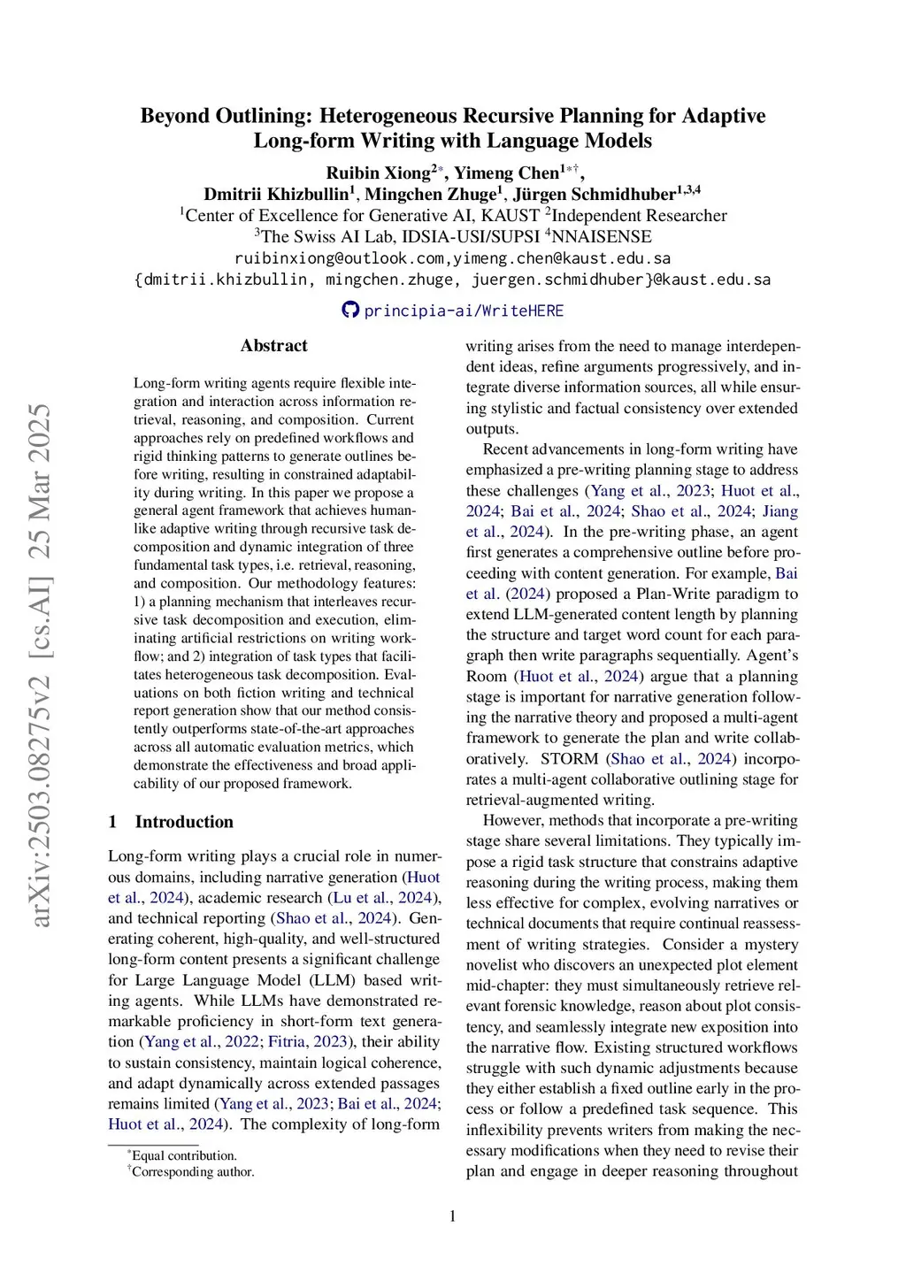 Beyond Outlining: Heterogeneous Recursive Planning for Adaptive Long-form Writing with Language Models