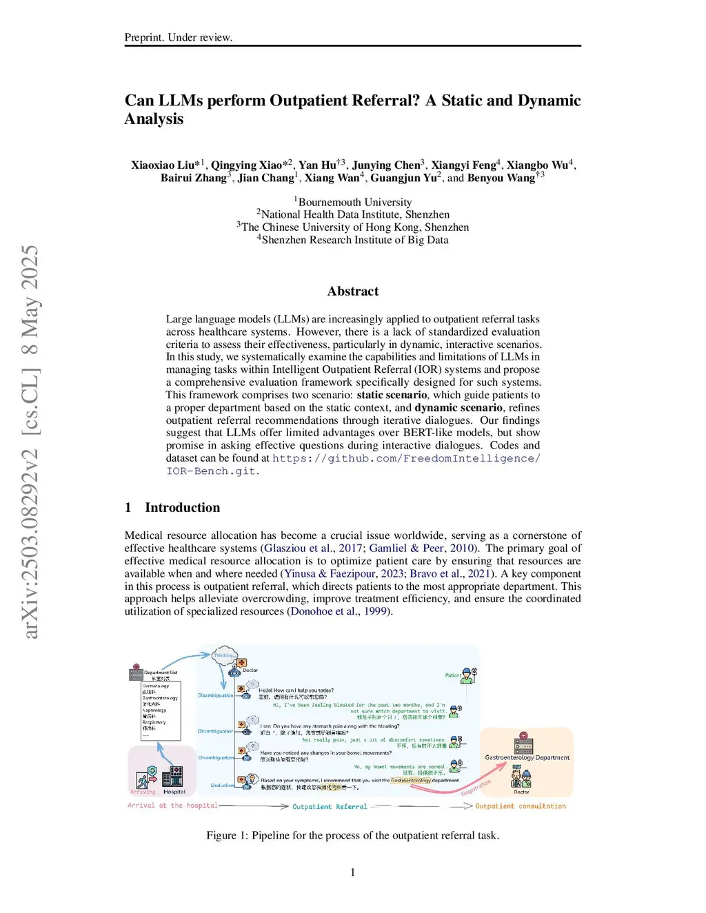 Large Language Models for Outpatient Referral: Problem Definition, Benchmarking and Challenges
