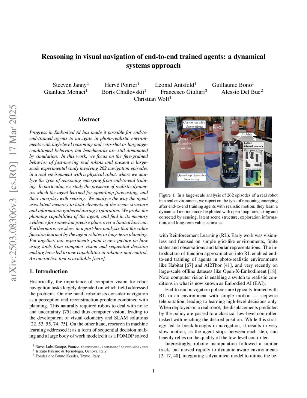 Reasoning in visual navigation of end-to-end trained agents: a dynamical systems approach