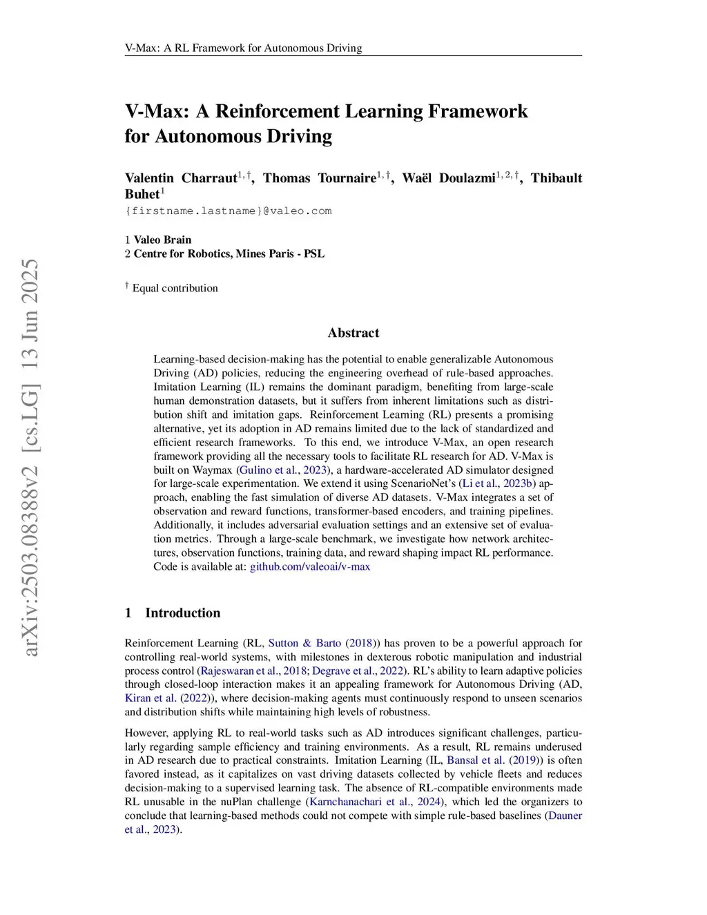 V-Max: A Reinforcement Learning Framework for Autonomous Driving
