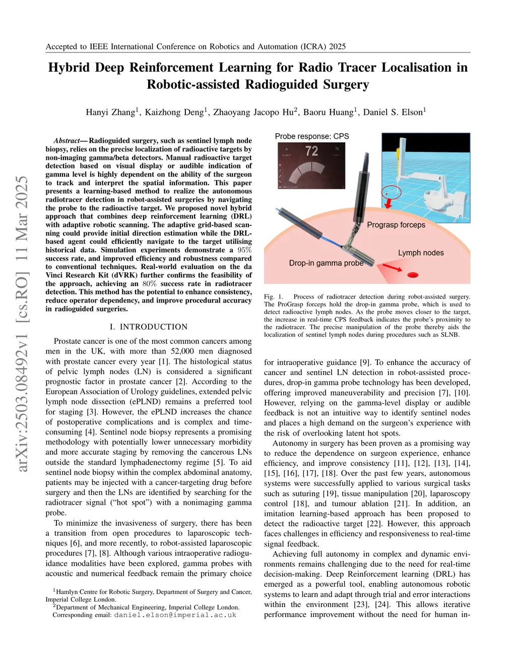 Hybrid Deep Reinforcement Learning for Radio Tracer Localisation in Robotic-assisted Radioguided Surgery