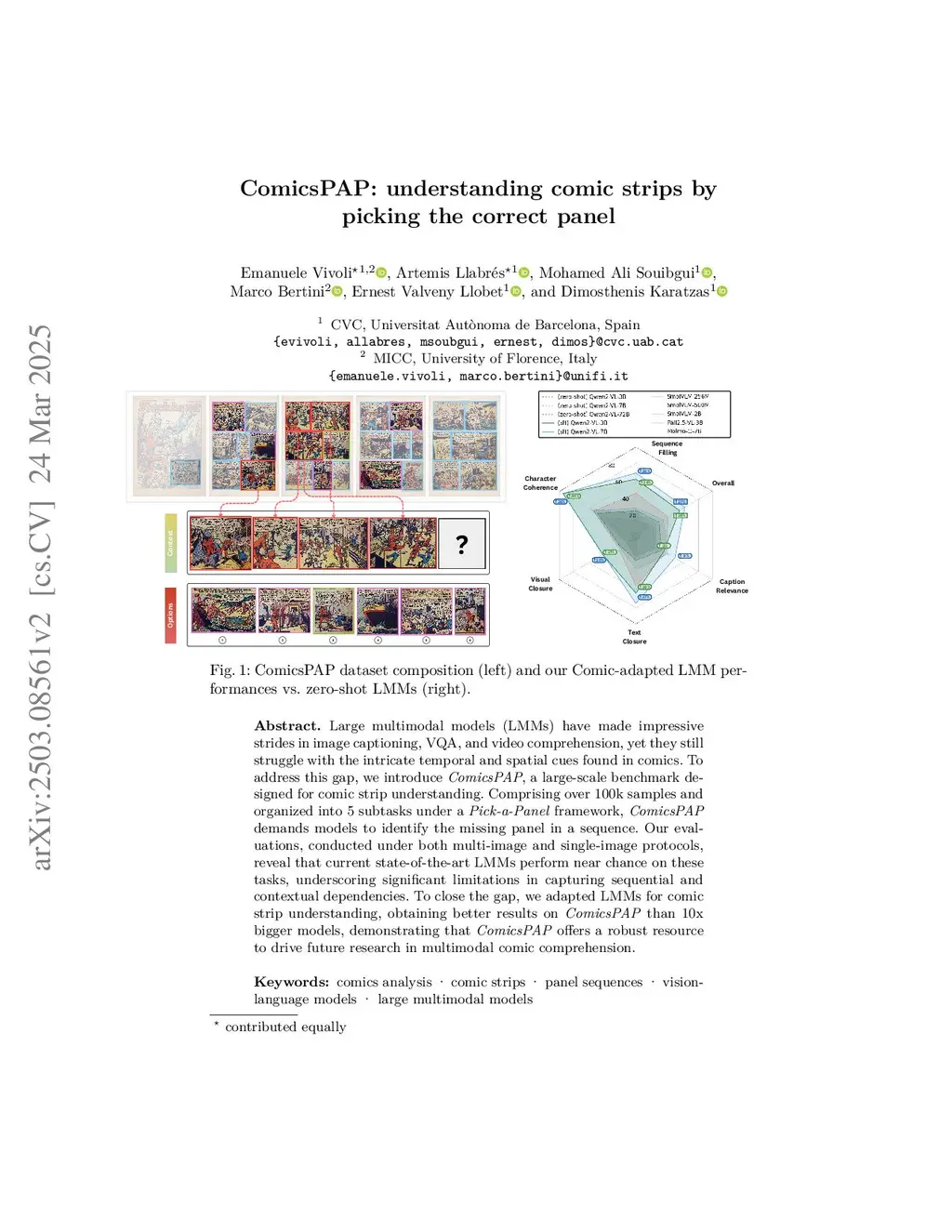 ComicsPAP: understanding comic strips by picking the correct panel