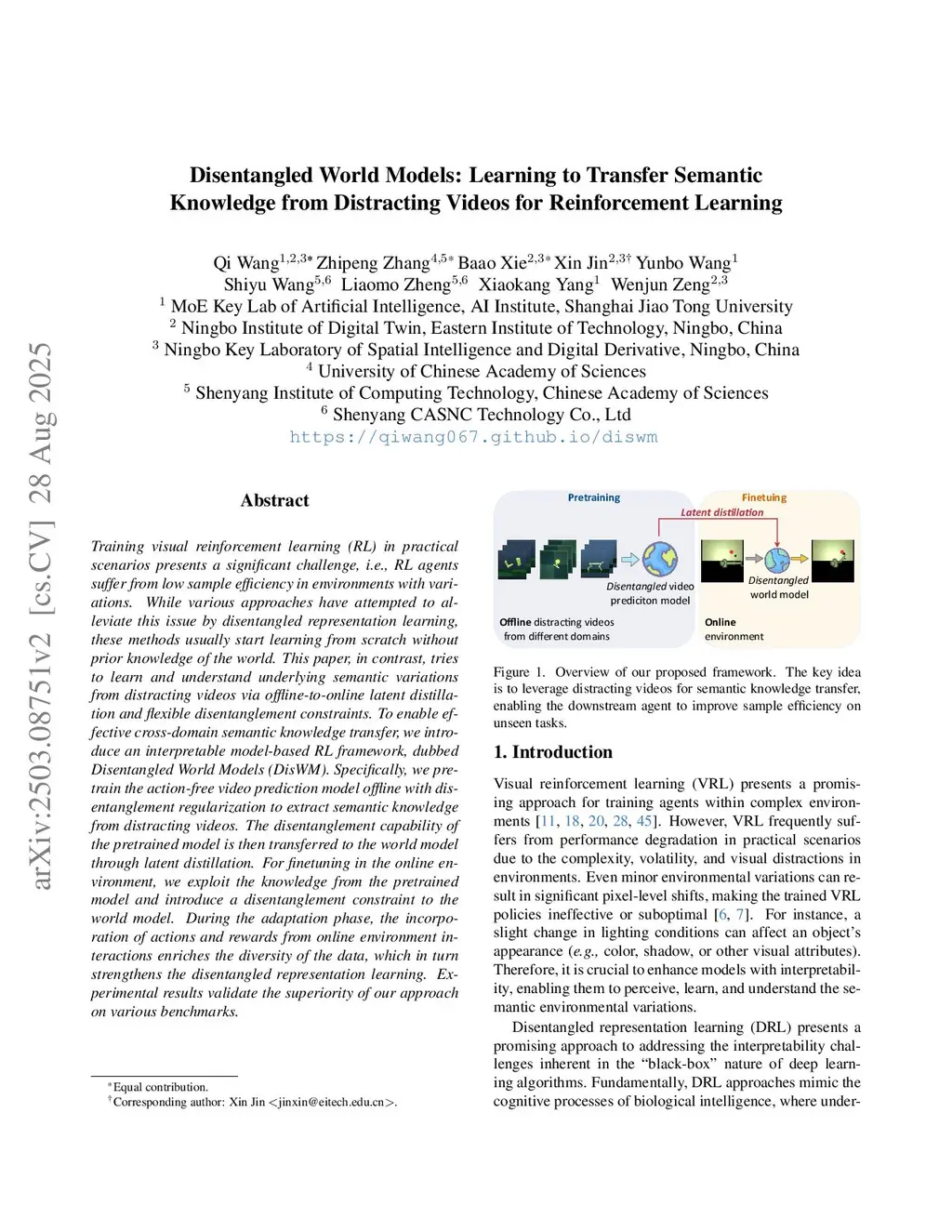 Disentangled World Models: Learning to Transfer Semantic Knowledge from Distracting Videos for Reinforcement Learning