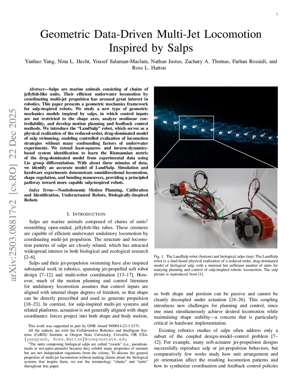 Geometric Data-Driven Multi-Jet Locomotion Inspired by Salps