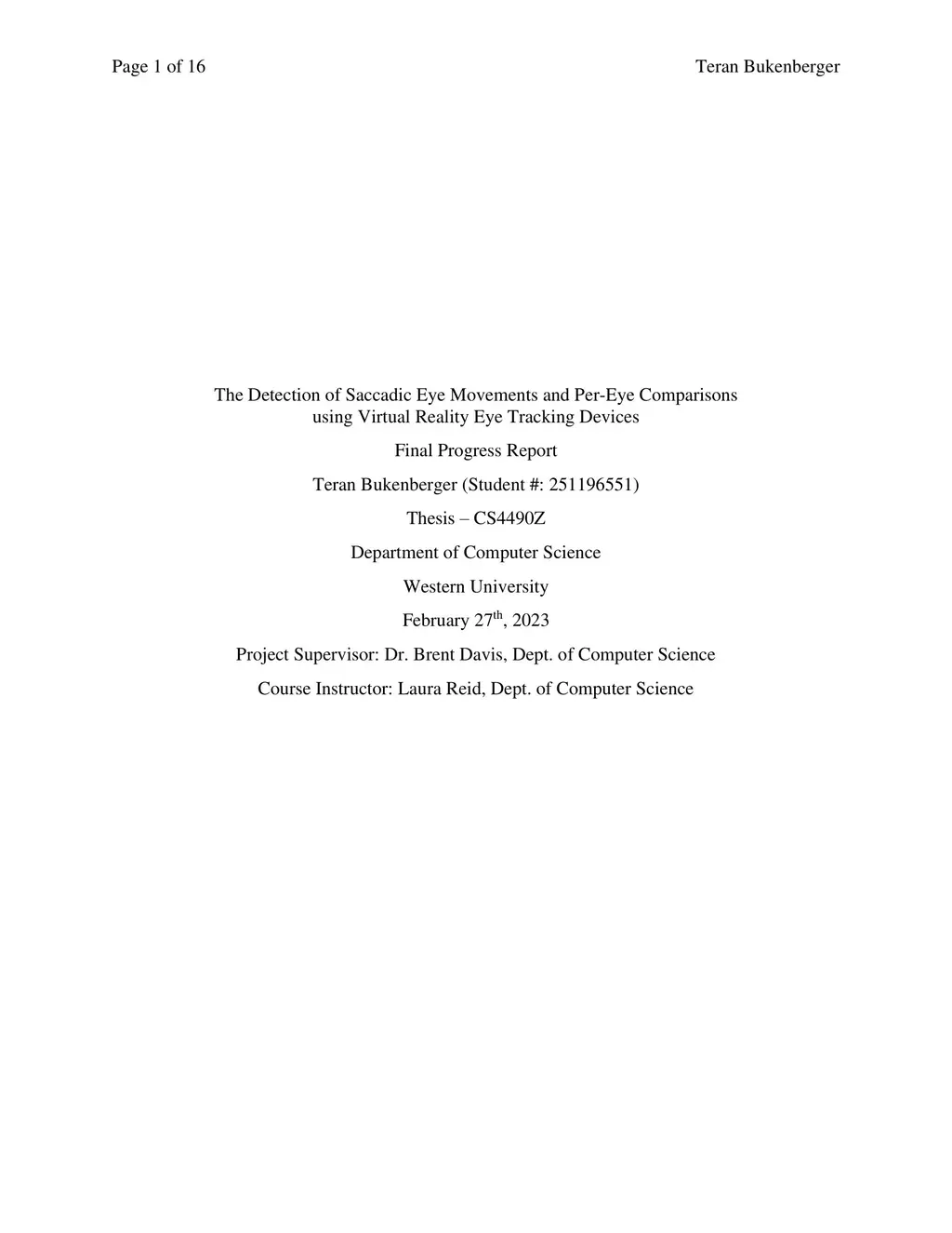 Eye tracking has been found to be useful in various tasks including diagnostic and screening tools. However, traditional eye trackers had a complicated setup and operated at a higher frequency to measure eye movements. The use of more commonly available eye trackers such as those in head-mounted virtual reality (VR) headsets greatly expands the utility of these eye trackers for research and analytical purposes. In this study, the research question is focused on detecting saccades, which is a common task when analyzing eye tracking data, but it is not well-established for VR headset-mounted eye trackers. The aim is to determine how accurately saccadic eye movements can be detected using an eye tracker that operates at 60 or 90Hz. The study involves VR eye tracking technology and neuroscience with respect to saccadic eye movements. The goal is to build prototype software implemented using VR eye tracking technology to detect saccadic eye movements, and per-eye differences in an individual. It is anticipated that the software will be able to accurately detect when saccades occur and analyze the differences in saccadic eye movements per-eye. The field of research surrounding VR eye tracking software is still developing rapidly, specifically its applications to neuroscience. Since previous methods of eye tracking involved specialized equipment, using commercially and consumer available VR eye tracking technology to assist in the detection of saccades and per-eye differences would be novel. This project will impact the field of neuroscience by providing a tool that can be used to detect saccadic eye movements and neurological and neurodegenerative disorders. However, this project is limited by the short time frame and that the eye tracker used in this study operates at a maximum frequency of 90Hz.