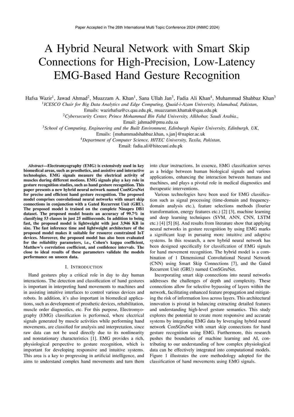 A Hybrid Neural Network with Smart Skip Connections for High-Precision, Low-Latency EMG-Based Hand Gesture Recognition