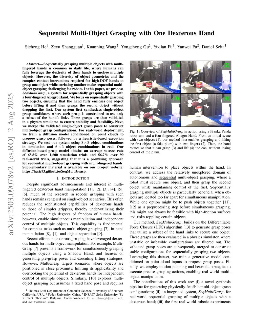 Sequential Multi-Object Grasping with One Dexterous Hand