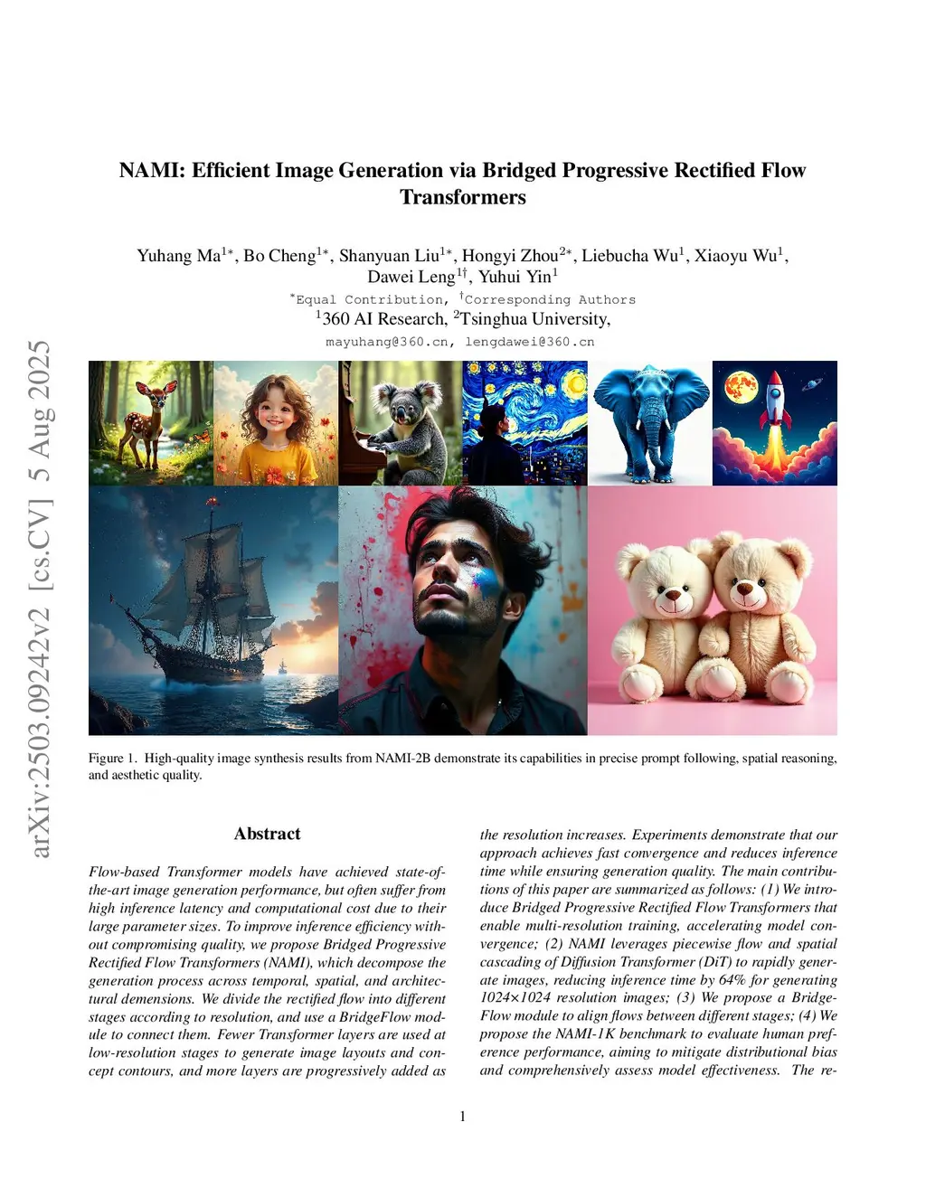 Flow-based Transformer models have achieved state-of-the-art image generation performance, but often suffer from high inference latency and computational cost due to their large parameter sizes. To improve inference efficiency without compromising quality, we propose Bridged Progressive Rectified Flow Transformers (NAMI), which decompose the generation process across temporal, spatial, and architectural demensions. We divide the rectified flow into different stages according to resolution, and use a BridgeFlow module to connect them. Fewer Transformer layers are used at low-resolution stages to generate image layouts and concept contours, and more layers are progressively added as the resolution increases. Experiments demonstrate that our approach achieves fast convergence and reduces inference time while ensuring generation quality. The main contributions of this paper are summarized as follows: (1) We introduce Bridged Progressive Rectified Flow Transformers that enable multi-resolution training, accelerating model convergence; (2) NAMI leverages piecewise flow and spatial cascading of Diffusion Transformer (DiT) to rapidly generate images, reducing inference time by 64% for generating 1024 resolution images; (3) We propose a BridgeFlow module to align flows between different stages; (4) We propose the NAMI-1K benchmark to evaluate human preference performance, aiming to mitigate distributional bias and comprehensively assess model effectiveness. The results show that our model is competitive with state-of-the-art models.
