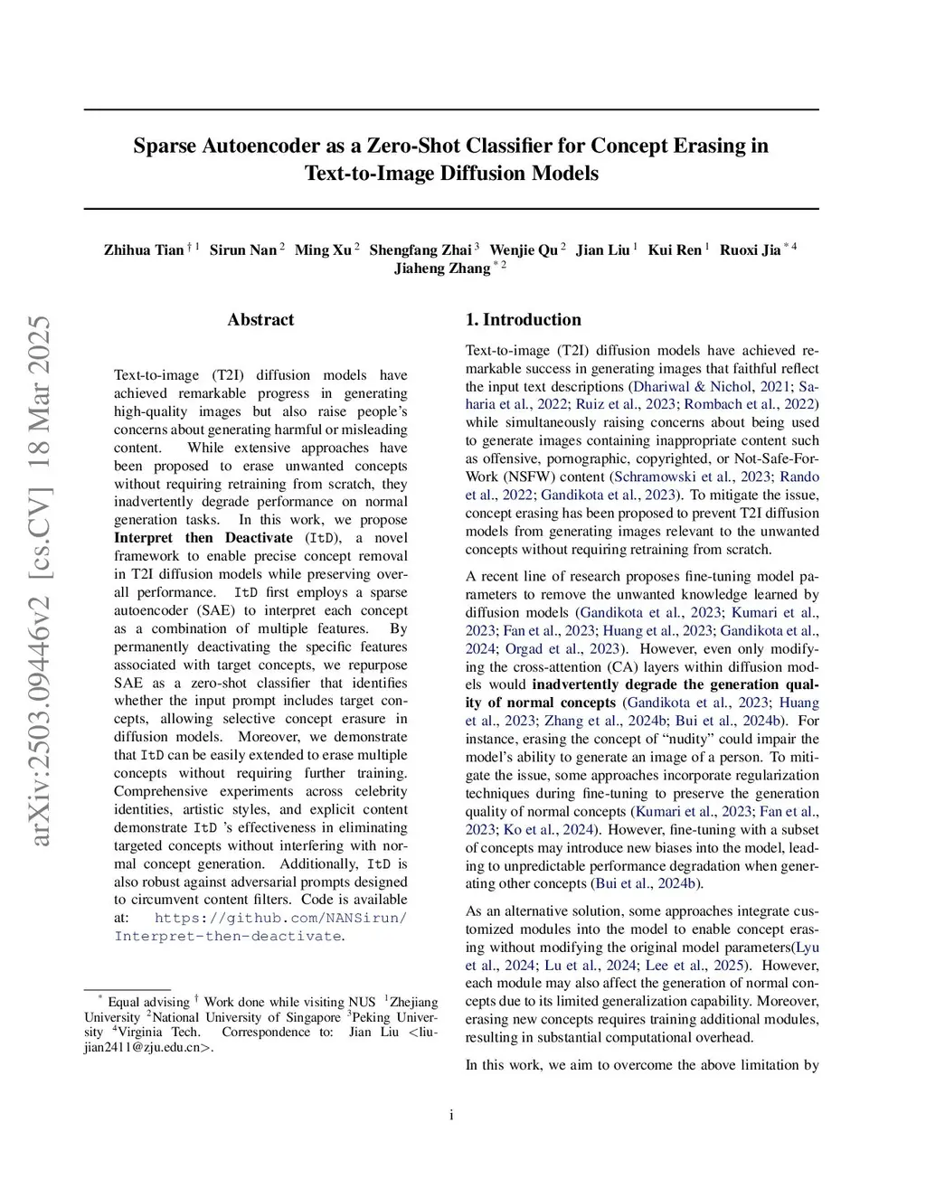 Sparse Autoencoder as a Zero-Shot Classifier for Concept Erasing in Text-to-Image Diffusion Models