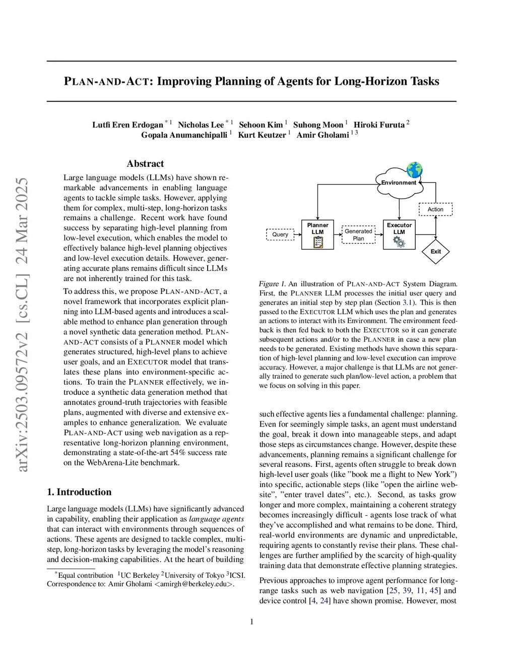 Plan-and-Act: Improving Planning of Agents for Long-Horizon Tasks