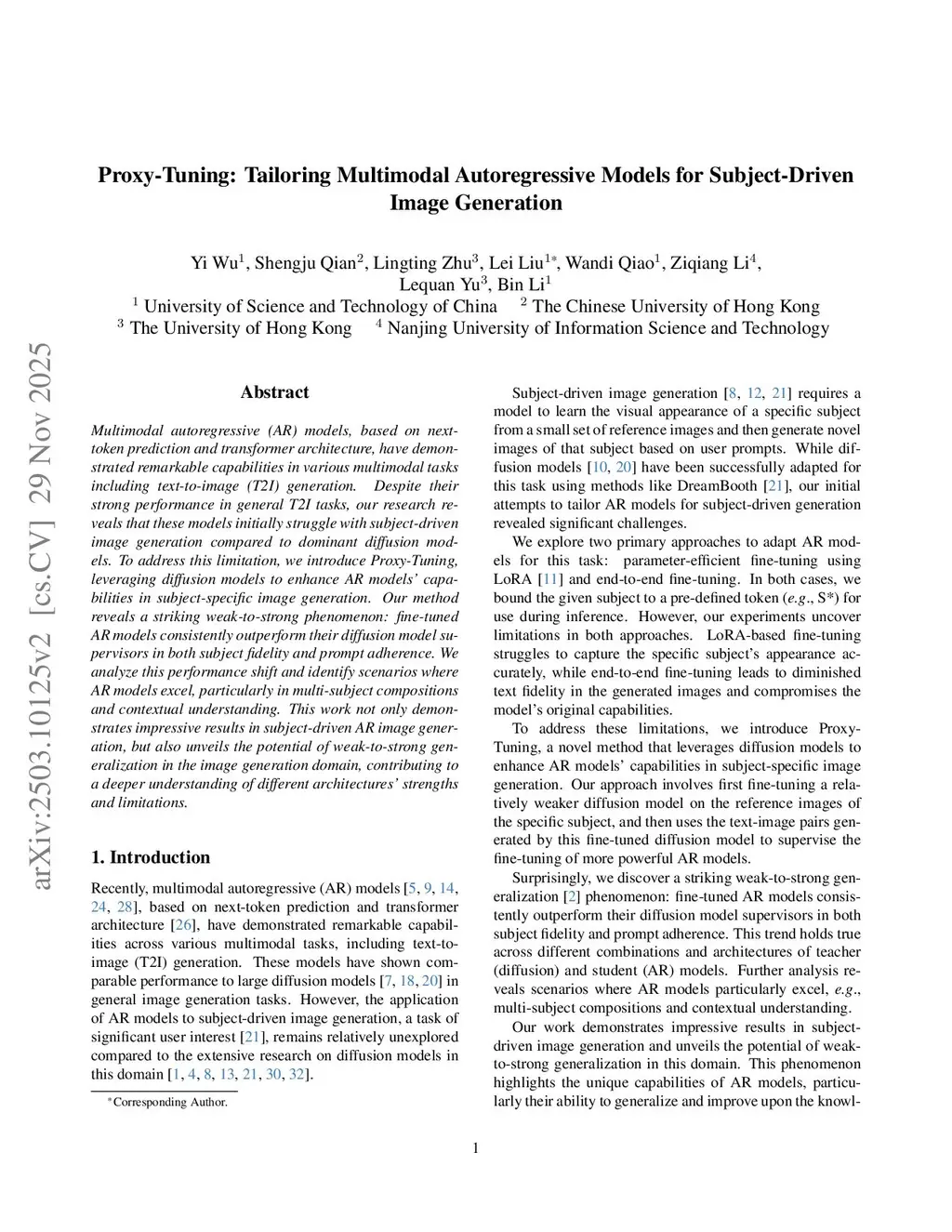 Multimodal autoregressive (AR) models, based on next-token prediction and transformer architecture, have demonstrated remarkable capabilities in various multimodal tasks including text-to-image (T2I) generation. Despite their strong performance in general T2I tasks, our research reveals that these models initially struggle with subject-driven image generation compared to dominant diffusion models. To address this limitation, we introduce Proxy-Tuning, leveraging diffusion models to enhance AR models' capabilities in subject-specific image generation. Our method reveals a striking weak-to-strong phenomenon: fine-tuned AR models consistently outperform their diffusion model supervisors in both subject fidelity and prompt adherence. We analyze this performance shift and identify scenarios where AR models excel, particularly in multi-subject compositions and contextual understanding. This work not only demonstrates impressive results in subject-driven AR image generation, but also unveils the potential of weak-to-strong generalization in the image generation domain, contributing to a deeper understanding of different architectures' strengths and limitations.