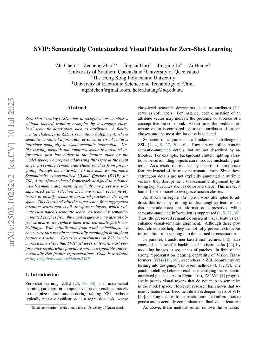 SVIP: Semantically Contextualized Visual Patches for Zero-Shot Learning