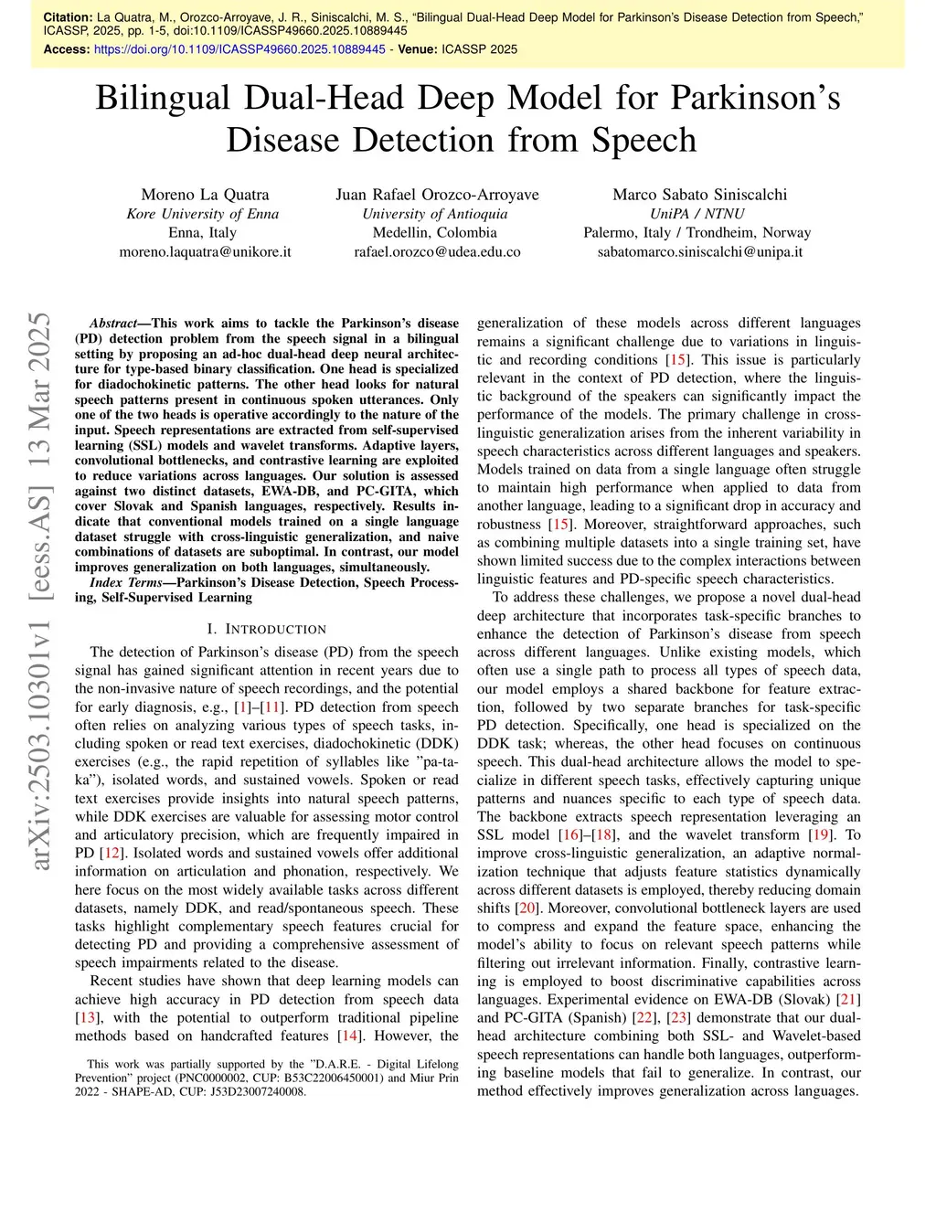 Bilingual Dual-Head Deep Model for Parkinson's Disease Detection from Speech