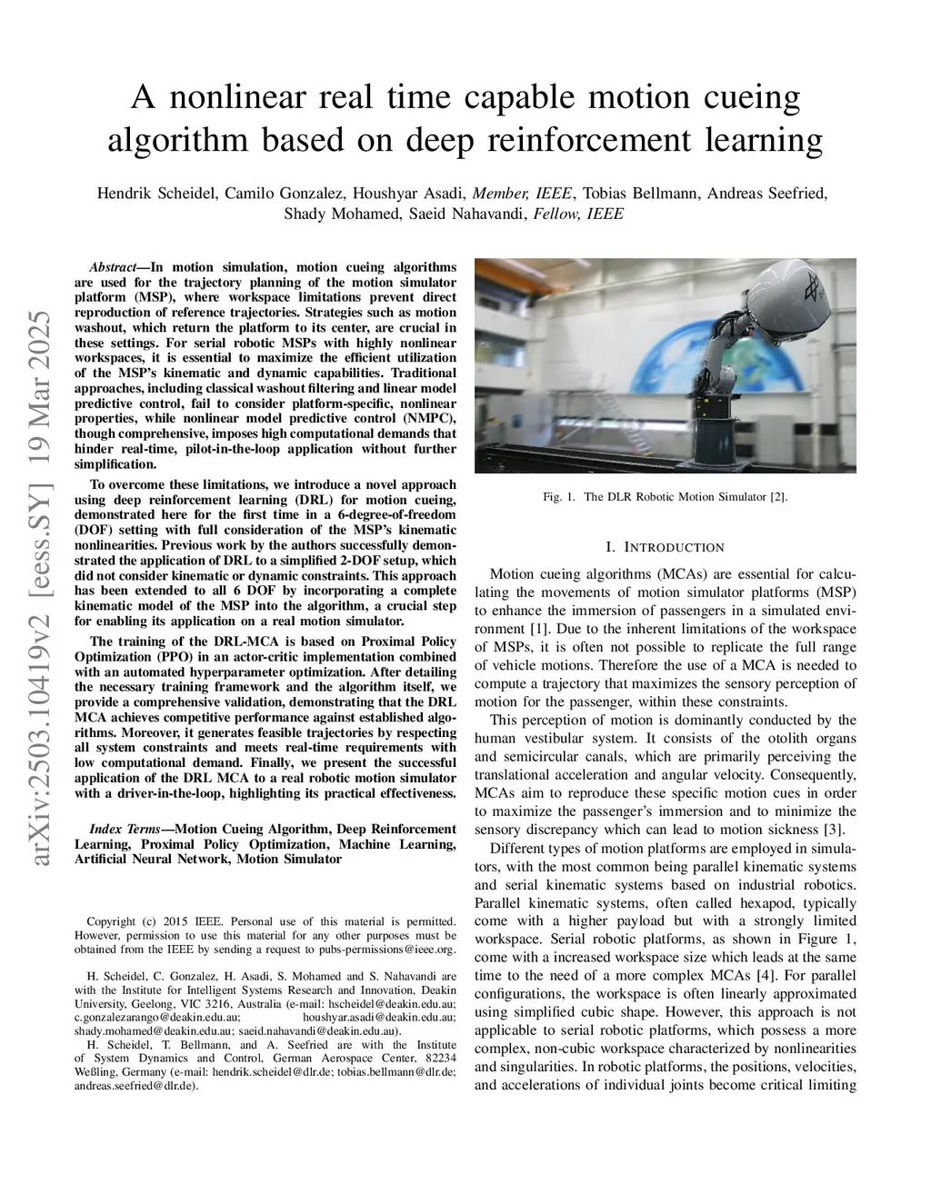 A nonlinear real time capable motion cueing algorithm based on deep reinforcement learning