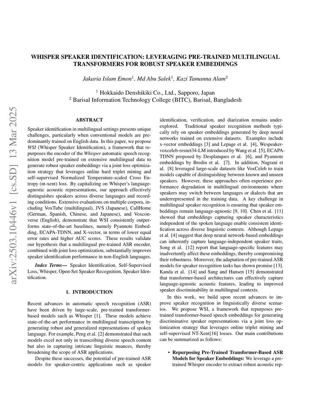 Whisper Speaker Identification: Leveraging Pre-Trained Multilingual Transformers for Robust Speaker Embeddings