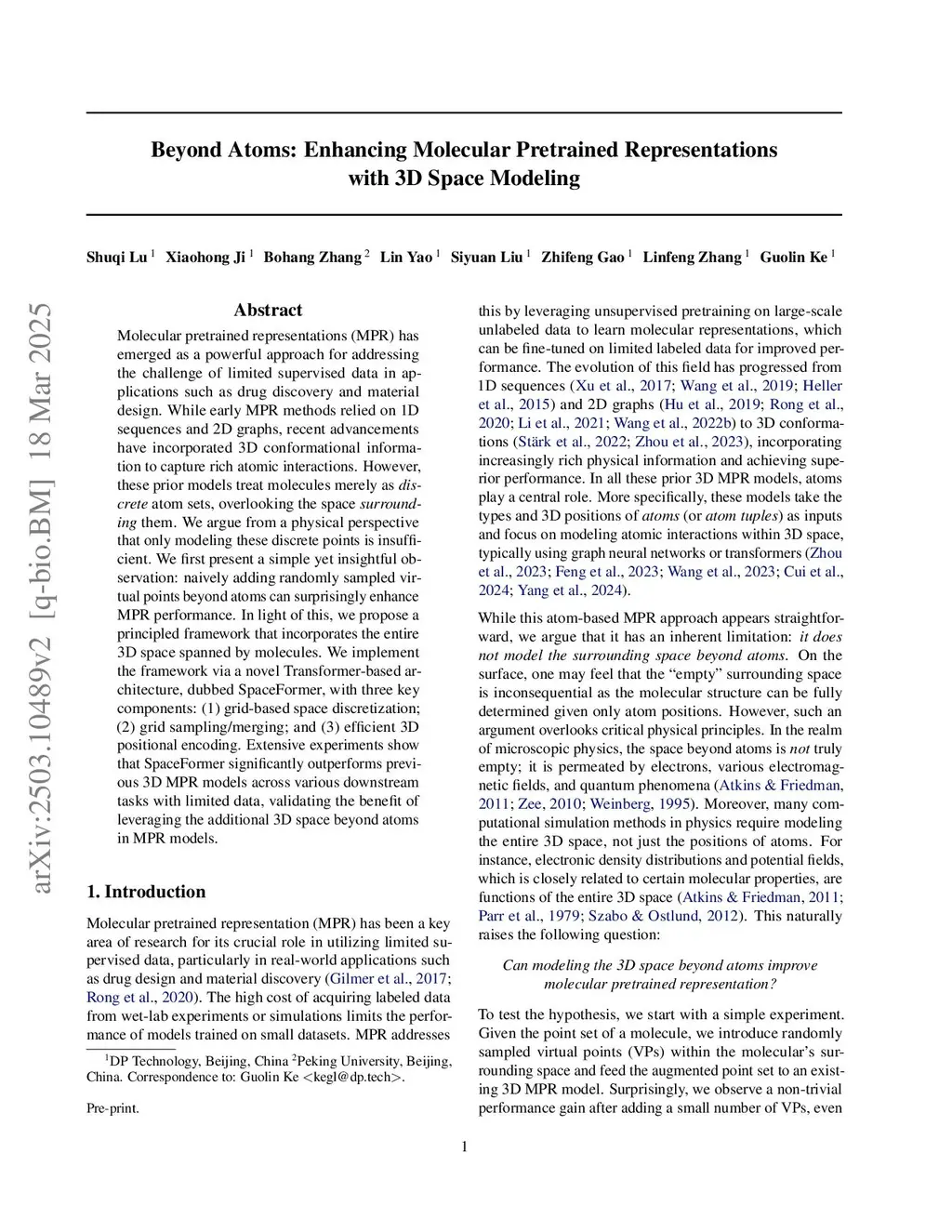 Beyond Atoms: Enhancing Molecular Pretrained Representations with 3D Space Modeling