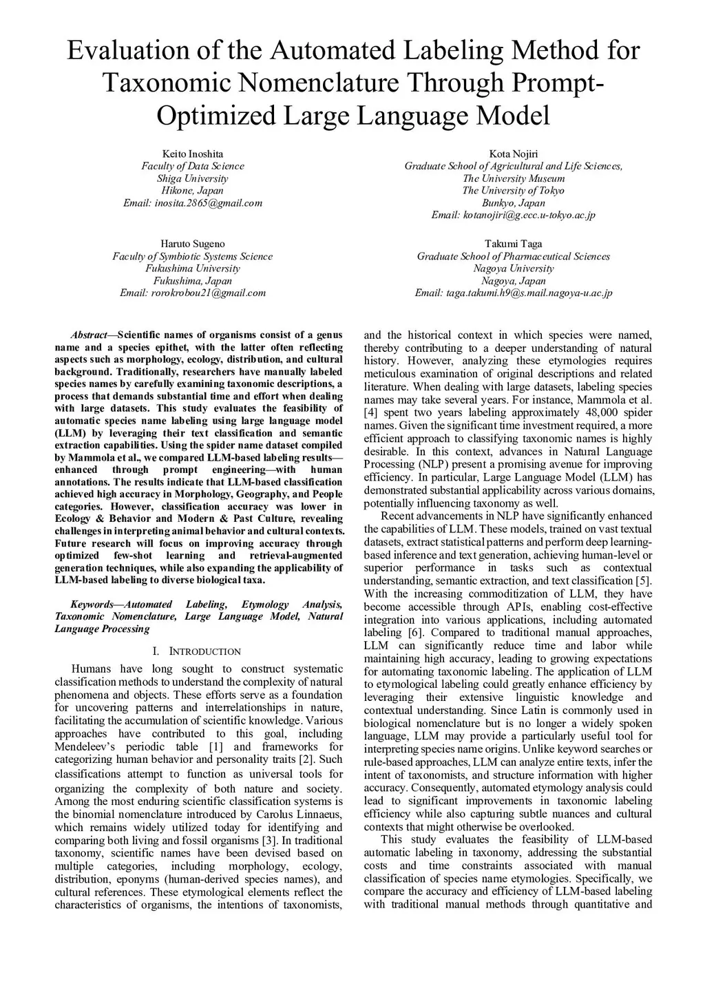 Evaluation of the Automated Labeling Method for Taxonomic Nomenclature Through Prompt-Optimized Large Language Model