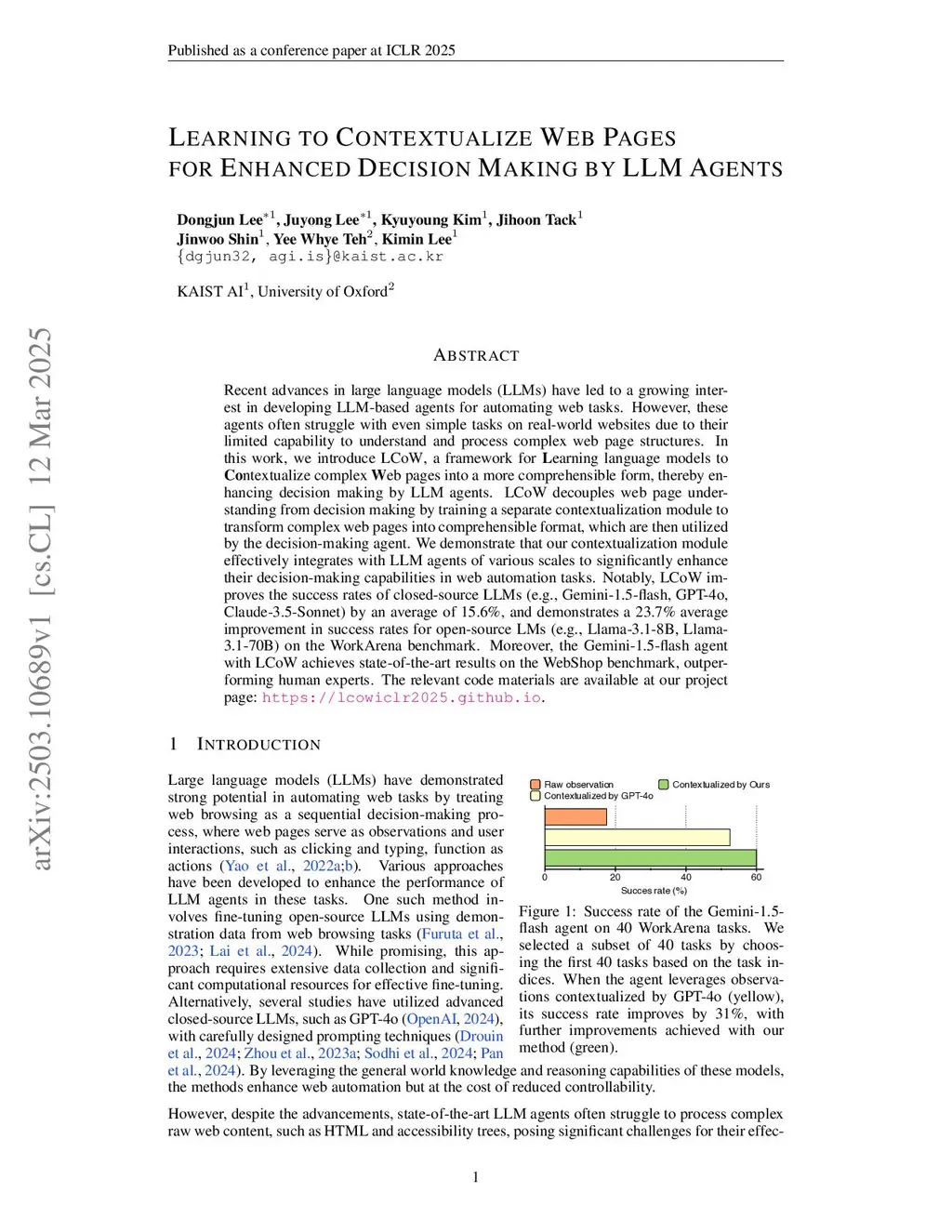 Learning to Contextualize Web Pages for Enhanced Decision Making by LLM Agents