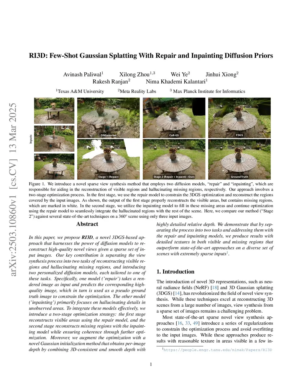 RI3D: Few-Shot Gaussian Splatting With Repair and Inpainting Diffusion Priors