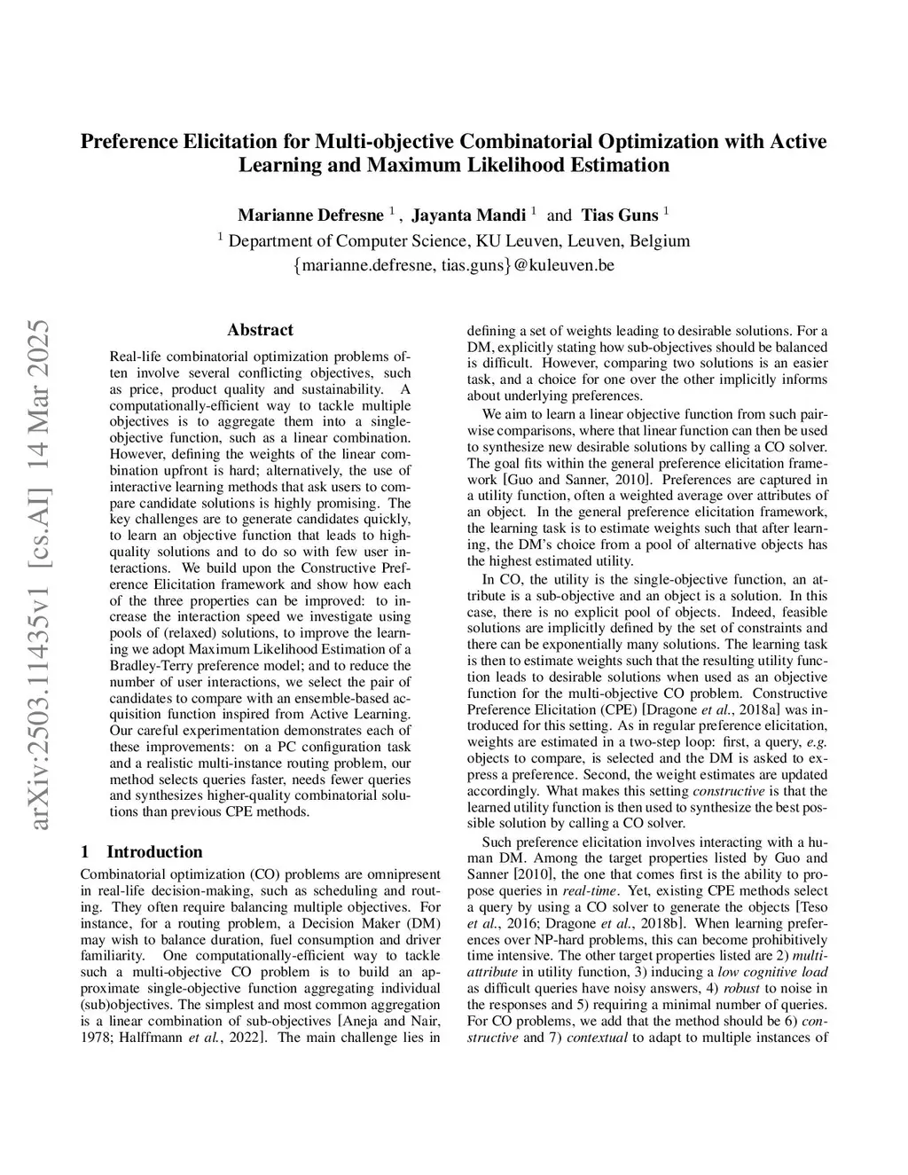 Preference Elicitation for Multi-objective Combinatorial Optimization with Active Learning and Maximum Likelihood Estimation