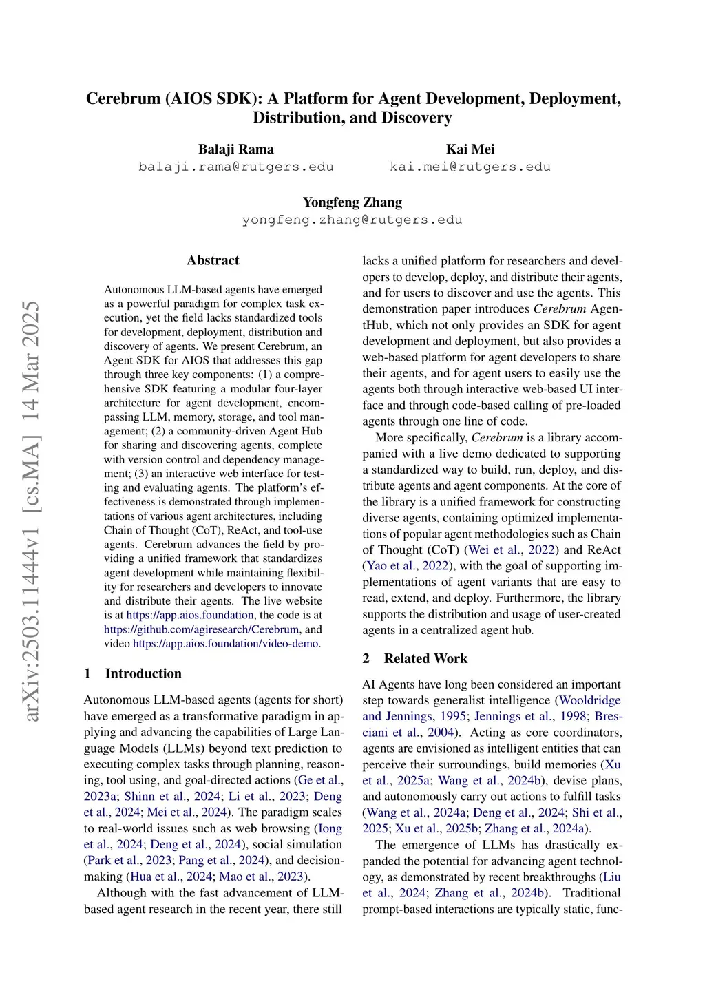 Cerebrum (AIOS SDK): A Platform for Agent Development, Deployment, Distribution, and Discovery