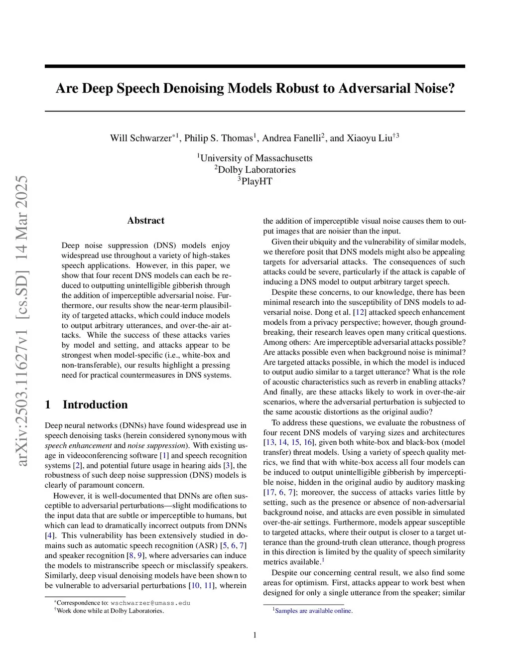 Deep noise suppression (DNS) models enjoy widespread use throughout a variety of high-stakes speech applications. However, we show that four recent DNS models can each be reduced to outputting unintelligible gibberish through the addition of psychoacoustically hidden adversarial noise, even in low-background-noise and simulated over-the-air settings. For three of the models, a small transcription study with audio and multimedia experts confirms unintelligibility of the attacked audio; simultaneously, an ABX study shows that the adversarial noise is generally imperceptible, with some variance between participants and samples. While we also establish several negative results around targeted attacks and model transfer, our results nevertheless highlight the need for practical countermeasures before open-source DNS systems can be used in safety-critical applications.