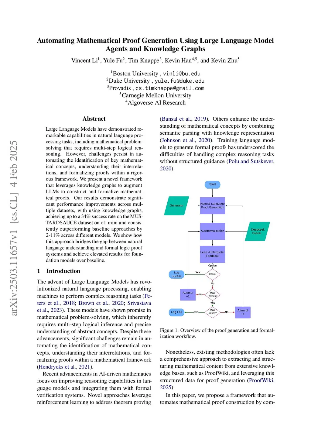 Automating Mathematical Proof Generation Using Large Language Model Agents and Knowledge Graphs