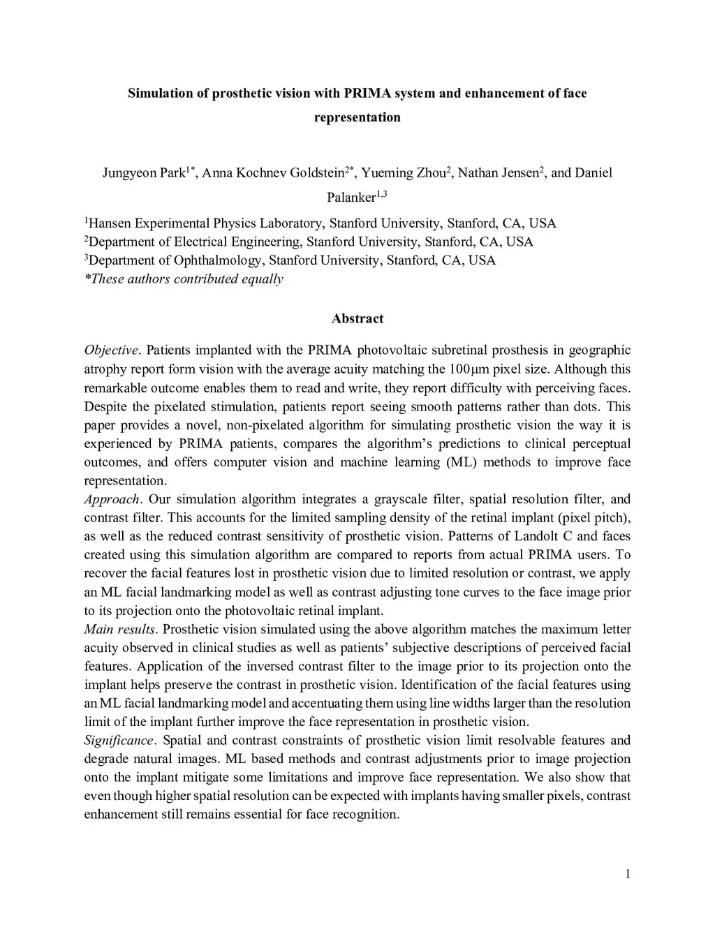 Simulation of prosthetic vision with PRIMA system and enhancement of face representation