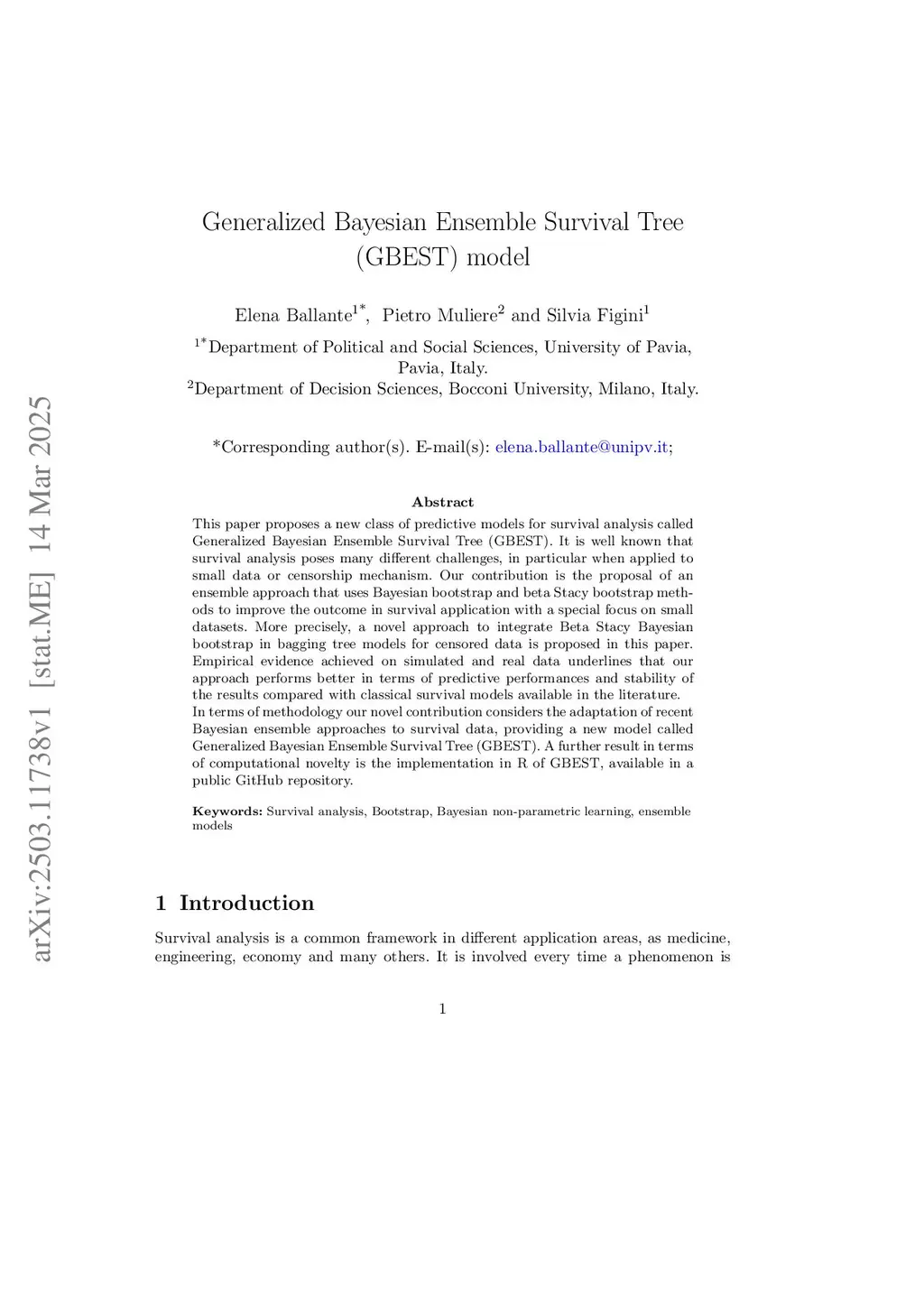 Generalized Bayesian Ensemble Survival Tree (GBEST) model