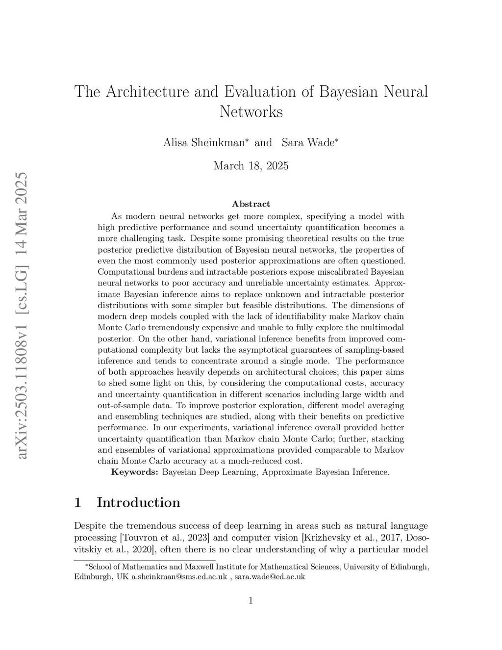 As modern neural networks get more complex, specifying a model with high predictive performance and sound uncertainty quantification becomes a more challenging task. Despite some promising theoretical results on the true posterior predictive distribution of Bayesian neural networks, the properties of even the most commonly used posterior approximations are often questioned. Computational burdens and intractable posteriors expose miscalibrated Bayesian neural networks to poor accuracy and unreliable uncertainty estimates. Approximate Bayesian inference aims to replace unknown and intractable posterior distributions with some simpler but feasible distributions. The dimensions of modern deep models, coupled with the lack of identifiability, make Markov chain Monte Carlo (MCMC) tremendously expensive and unable to fully explore the multimodal posterior. On the other hand, variational inference benefits from improved computational complexity but lacks the asymptotical guarantees of sampling-based inference and tends to concentrate around a single mode. The performance of both approaches heavily depends on architectural choices; this paper aims to shed some light on this by considering the computational costs, accuracy and uncertainty quantification in different scenarios including large width and out-of-sample data. To improve posterior exploration, different model averaging and ensembling techniques are studied, along with their benefits on predictive performance. In our experiments, variational inference overall provided better uncertainty quantification than MCMC; further, stacking and ensembles of variational approximations provided comparable accuracy to MCMC at a much-reduced cost.