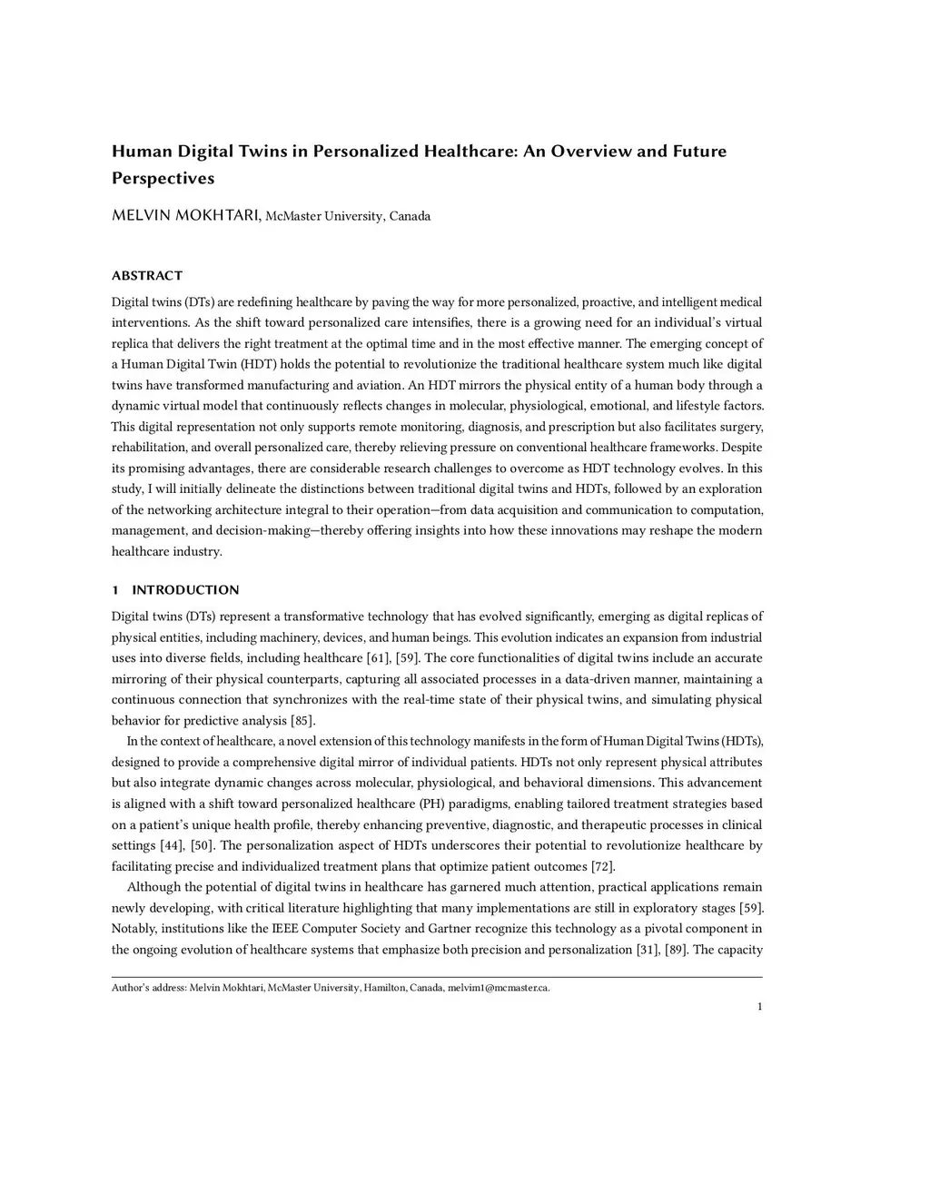 Digital twins (DTs) are redefining healthcare by paving the way for more personalized, proactive, and intelligent medical interventions. As the shift toward personalized care intensifies, there is a growing need for an individual's virtual replica that delivers the right treatment at the optimal time and in the most effective manner. The emerging concept of a Human Digital Twin (HDT) holds the potential to revolutionize the traditional healthcare system much like digital twins have transformed manufacturing and aviation. An HDT mirrors the physical entity of a human body through a dynamic virtual model that continuously reflects changes in molecular, physiological, emotional, and lifestyle factors. This digital representation not only supports remote monitoring, diagnosis, and prescription but also facilitates surgery, rehabilitation, and overall personalized care, thereby relieving pressure on conventional healthcare frameworks. Despite its promising advantages, there are considerable research challenges to overcome as HDT technology evolves. In this study, I will initially delineate the distinctions between traditional digital twins and HDTs, followed by an exploration of the networking architecture integral to their operation--from data acquisition and communication to computation, management, and decision-making--thereby offering insights into how these innovations may reshape the modern healthcare industry.